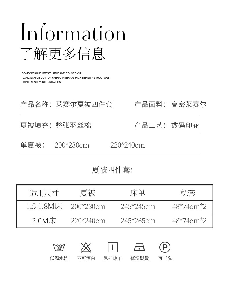 고급스러운 100% 라이오셀 텐셀 여름 이불, 시원한 아이스 실크 얇은 이불, 세탁기 사용 가능 에어컨 이불 4종 세트스토어 가기