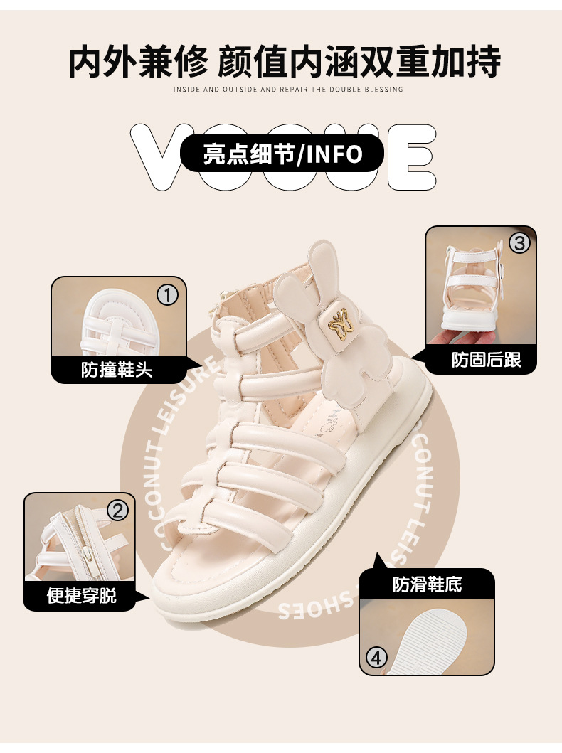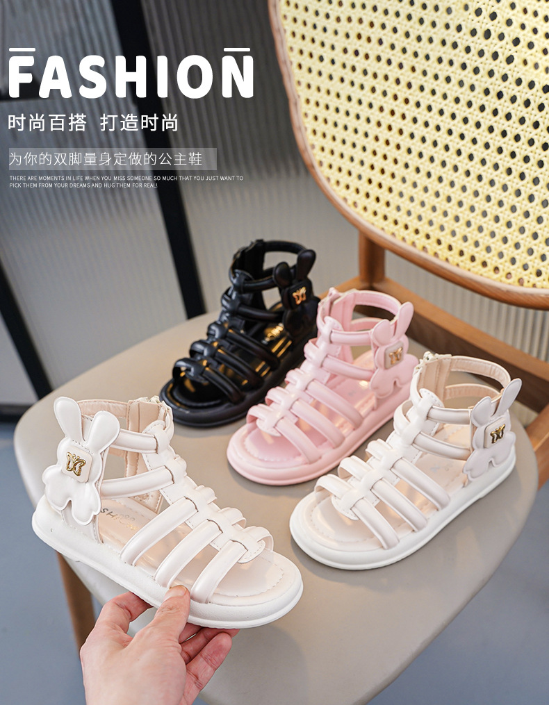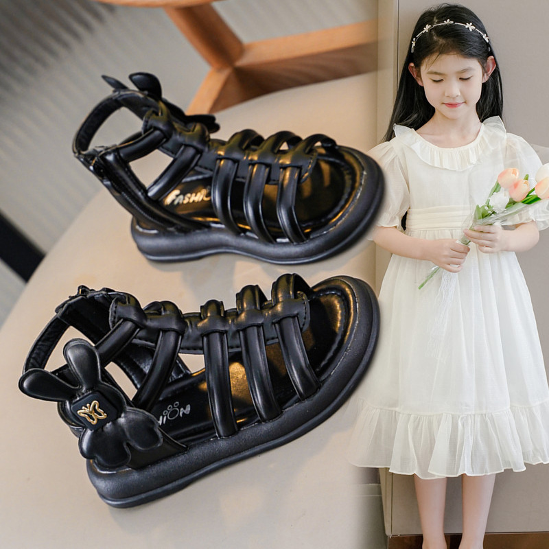 소녀 샌들 여름 2025 새로운 어린이 로마 신발 대형 어린이 부드러운 바닥 오픈 발가락 작은 소녀 공주 신발