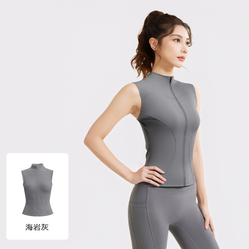 수직 칼라 스트레치가있는 새로운 스타일의 민소매 재킷 슬림핏 통기성 슬리밍 스포츠 지퍼 카디건 조끼 헤어 요가 옷
