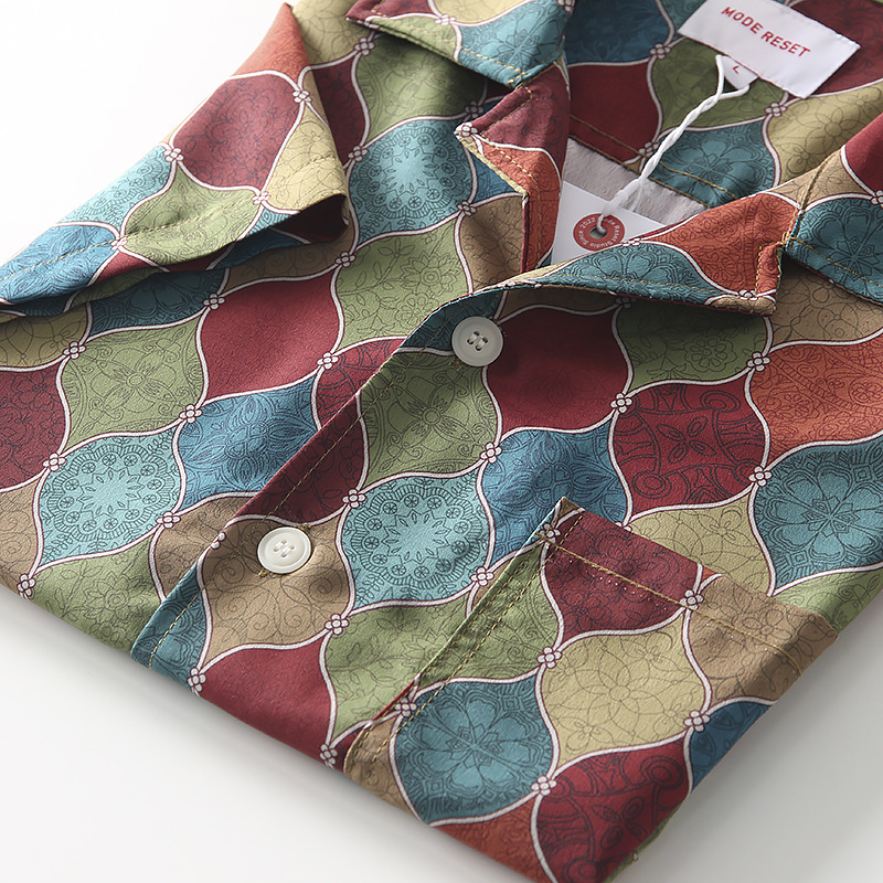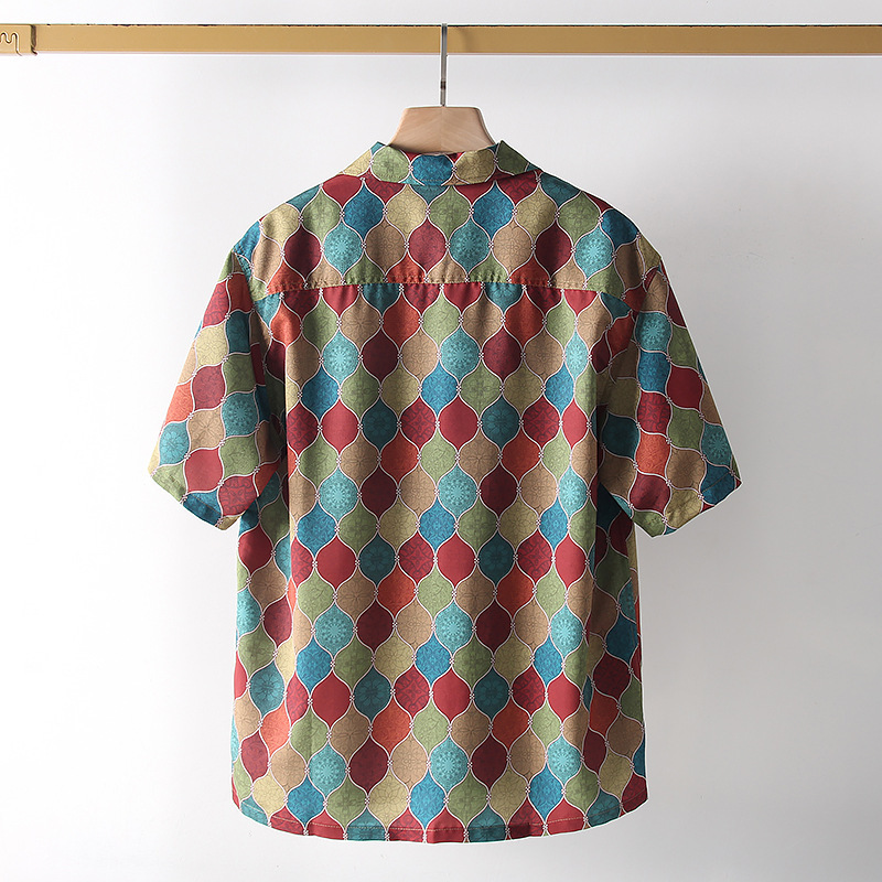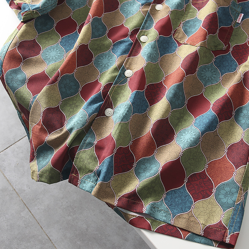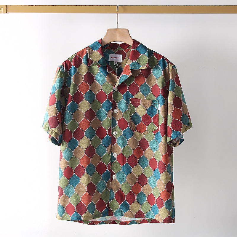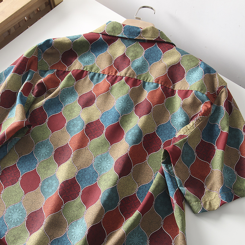 빈티지 코트 스타일 쿠바 칼라 하와이안 프린트 셔츠 남자 여름 얇은 느슨한 올 매치 비치 캐주얼 셔츠