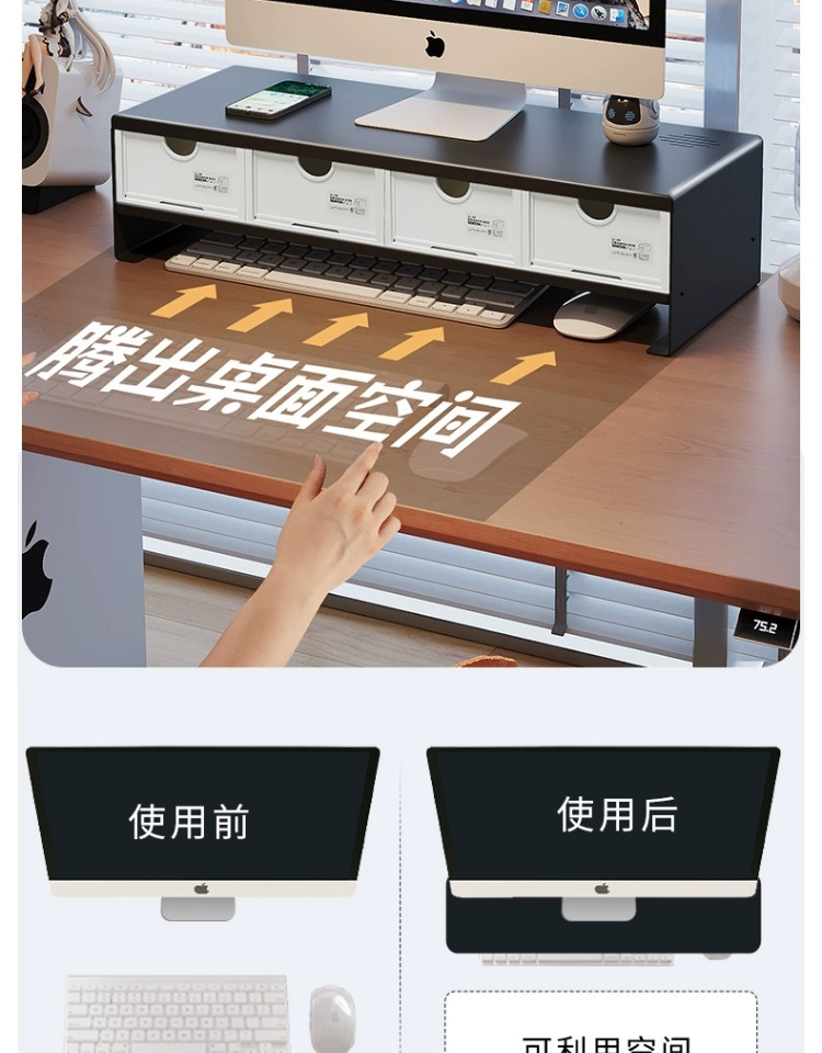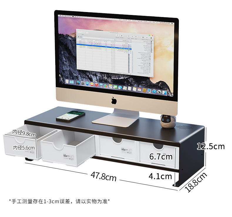 데스크탑 컴퓨터 높은 랙 디스플레이 화면 지원 브래킷 스토리지 박스 서랍 오피스 데스크탑 랙스토어 가기