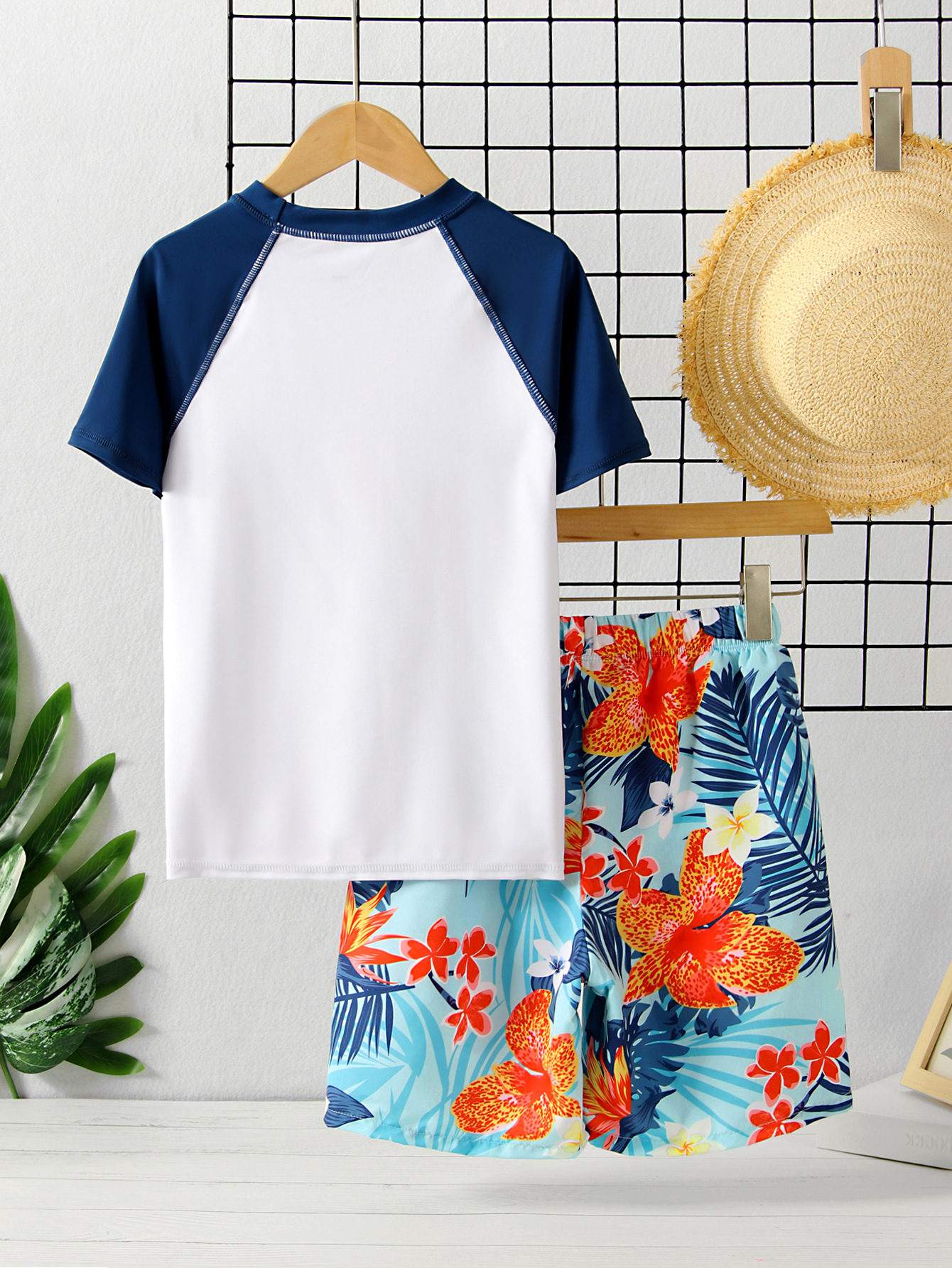 어린이 수영복 소년 분할 짧은 소매 수영복 2025 새 편지 인쇄 비치 반바지 소년 수영복 여름스토어 가기