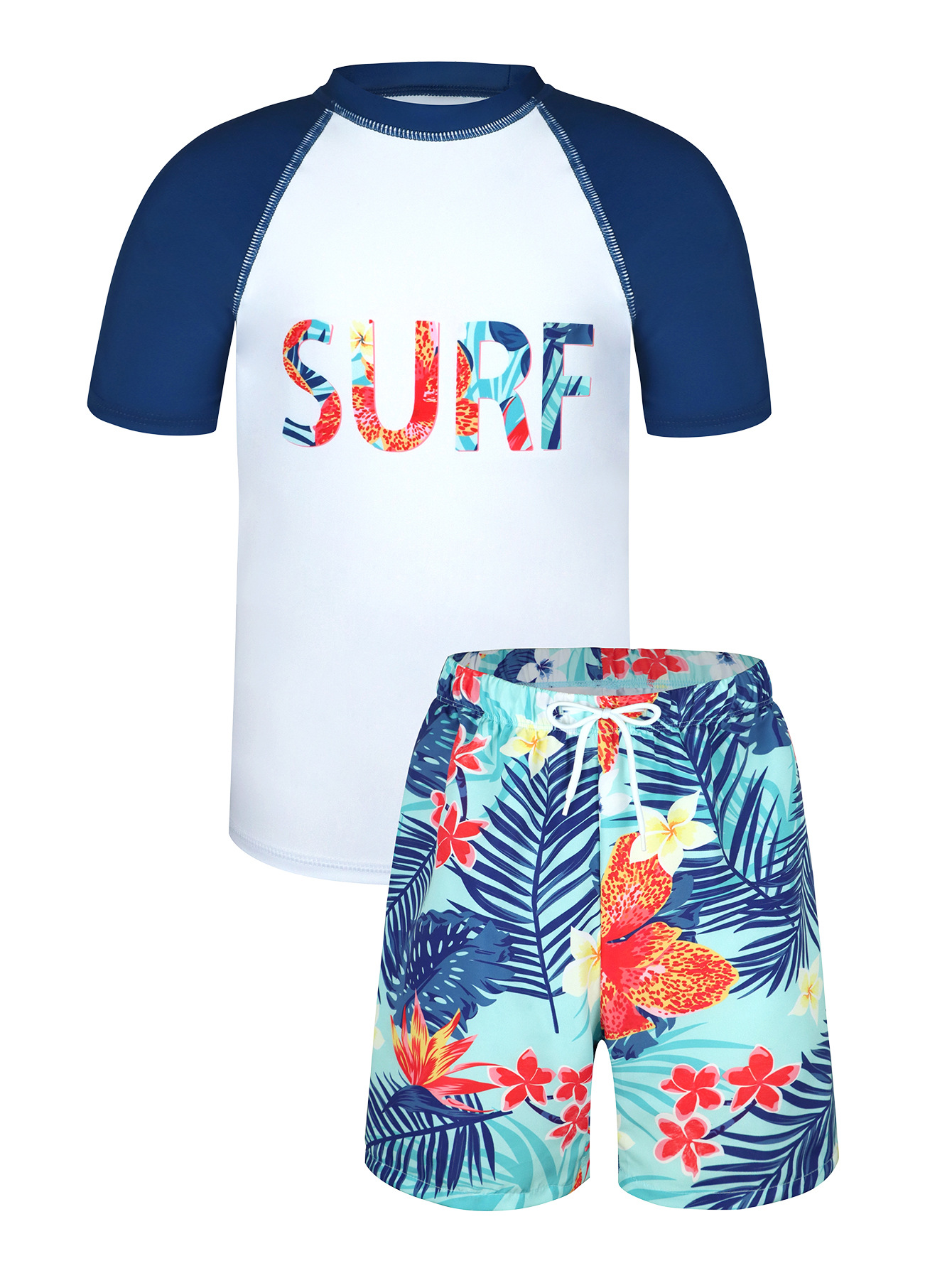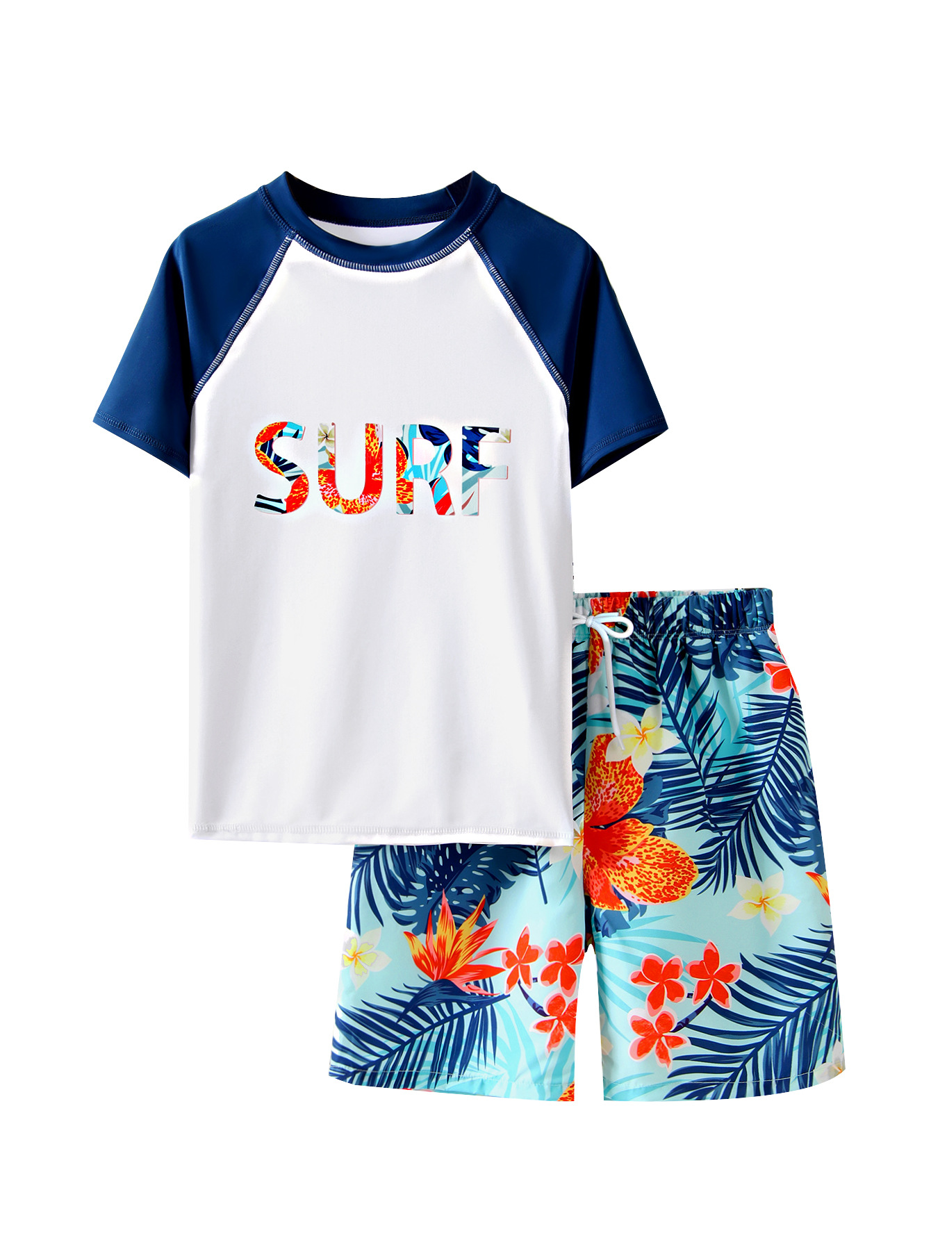 어린이 수영복 소년 분할 짧은 소매 수영복 2025 새 편지 인쇄 비치 반바지 소년 수영복 여름