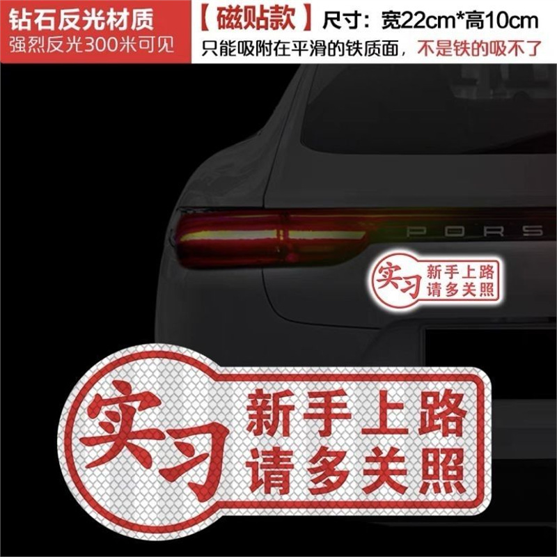 새로운 인턴십 초보자 자동차 스티커 방수 성격 경고 재미있는 반사 스티커 로고 빛나는 자기 자동차 스티커스토어 가기