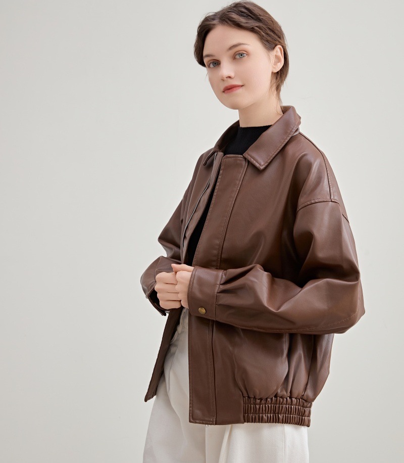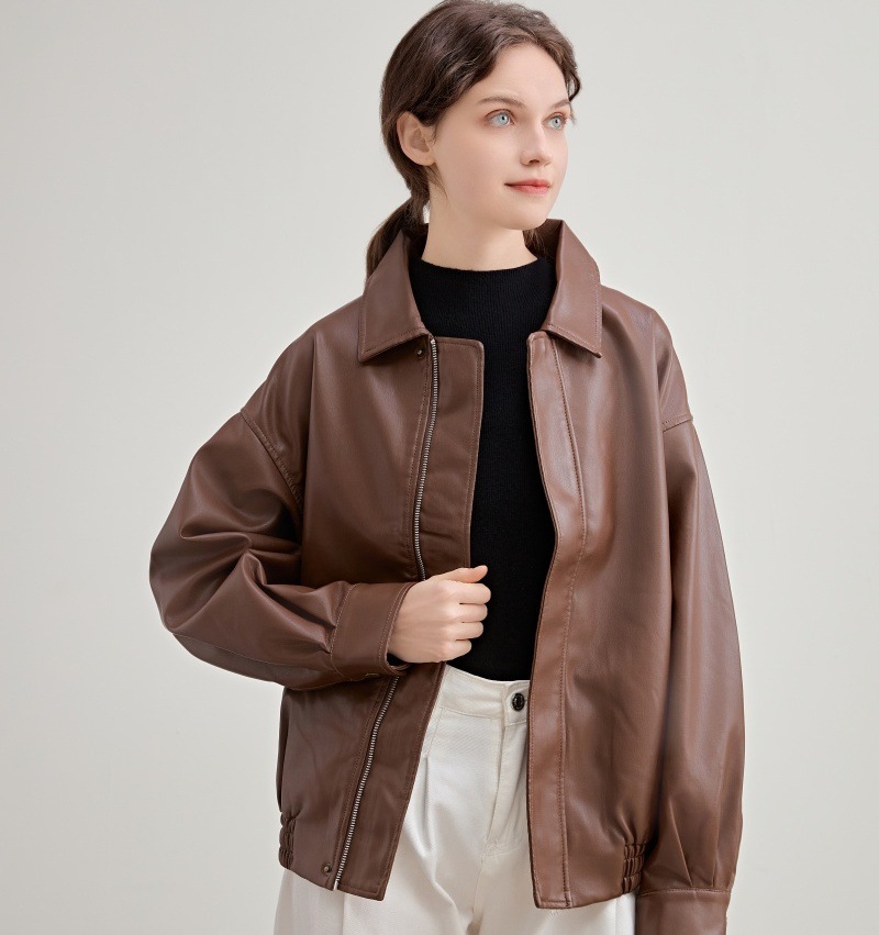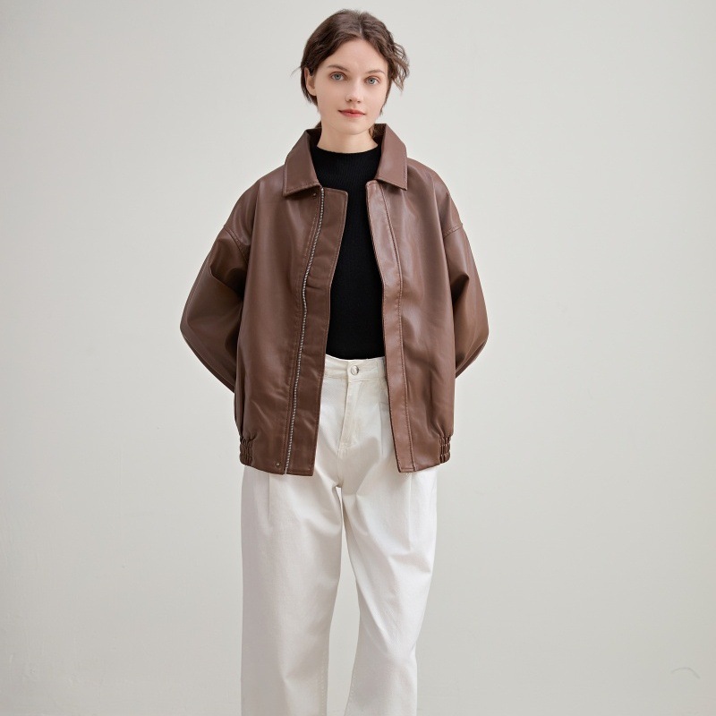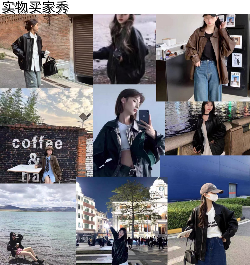 2025 봄 가을 여성 가죽 자켓 여성 인조 단백질 PU 가죽 바이커 자켓 쿨하고 세련된 한국 스타일 다용도 루즈핏 코트스토어 가기