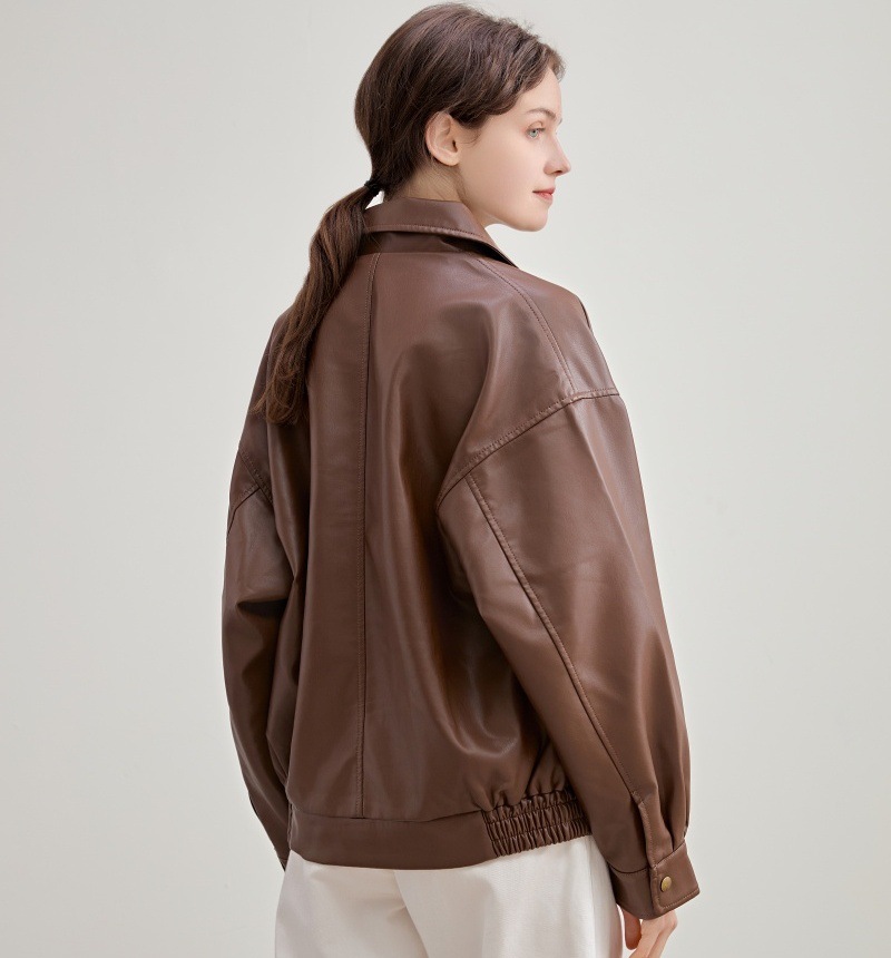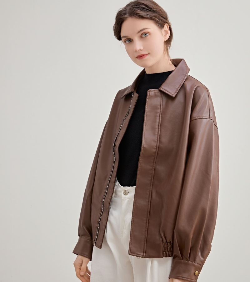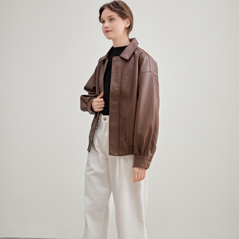 2025 봄 가을 여성 가죽 자켓 여성 인조 단백질 PU 가죽 바이커 자켓 쿨하고 세련된 한국 스타일 다용도 루즈핏 코트