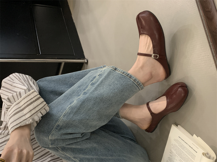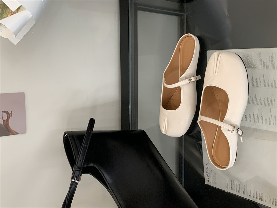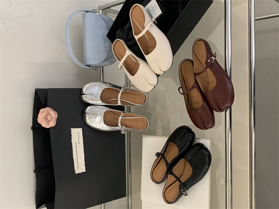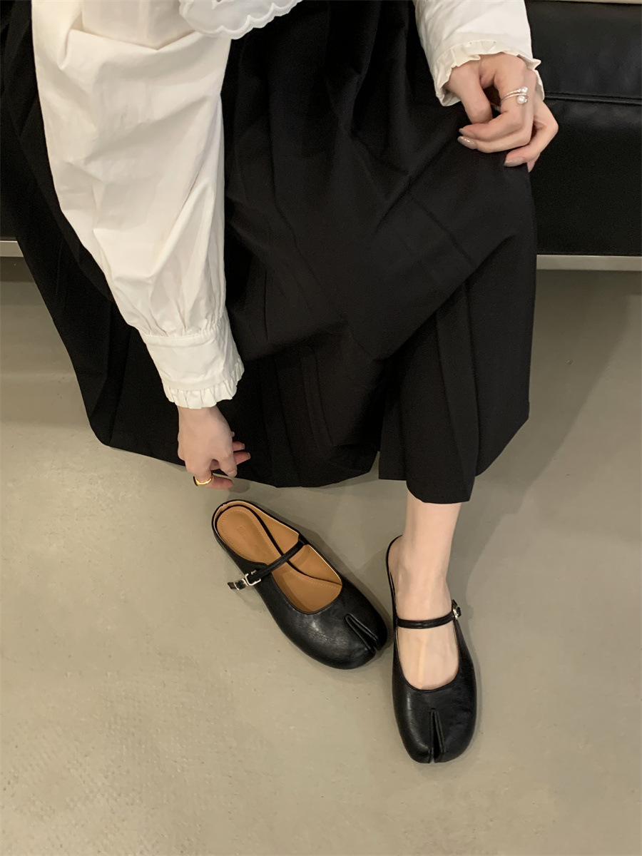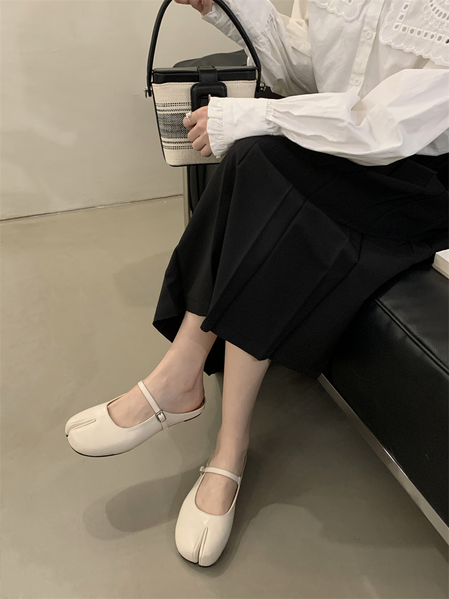 평평한 밑창 스플릿 토 피그 트로터 신발은 발가락 하프 슬리퍼 여성 신발 2025 새 여름 프랑스 슬립 온 레드 슈즈를 덮었습니다.스토어 가기