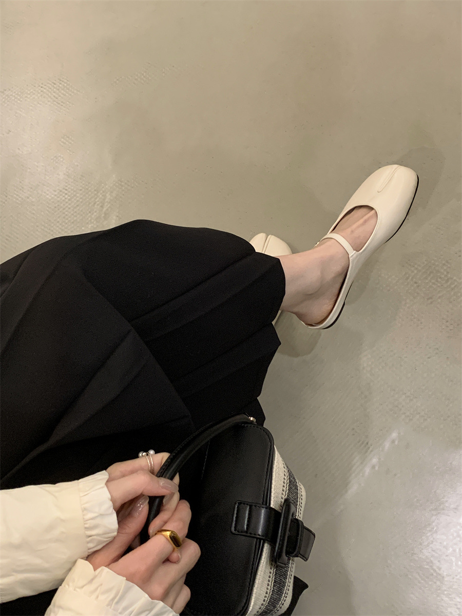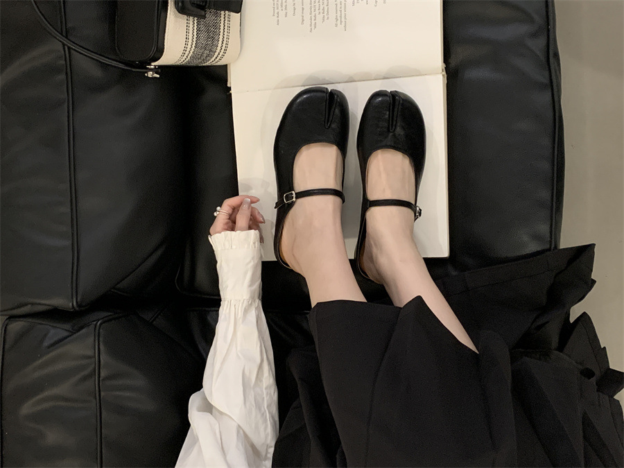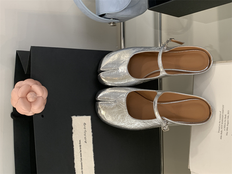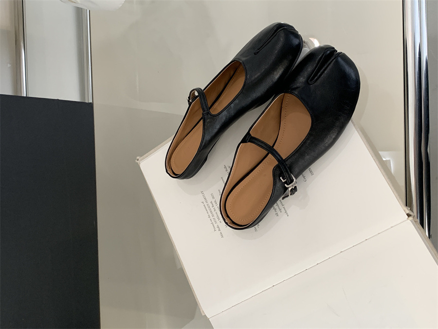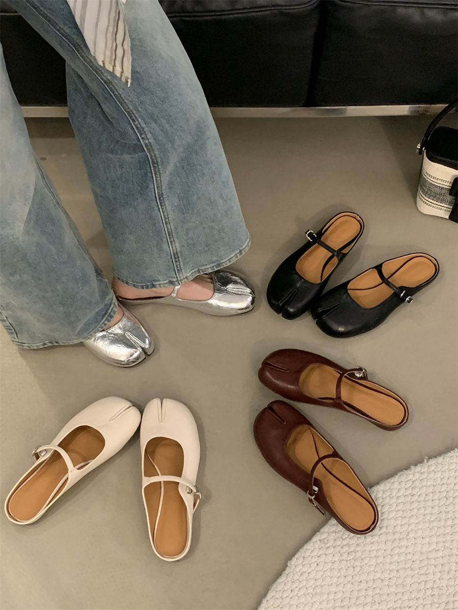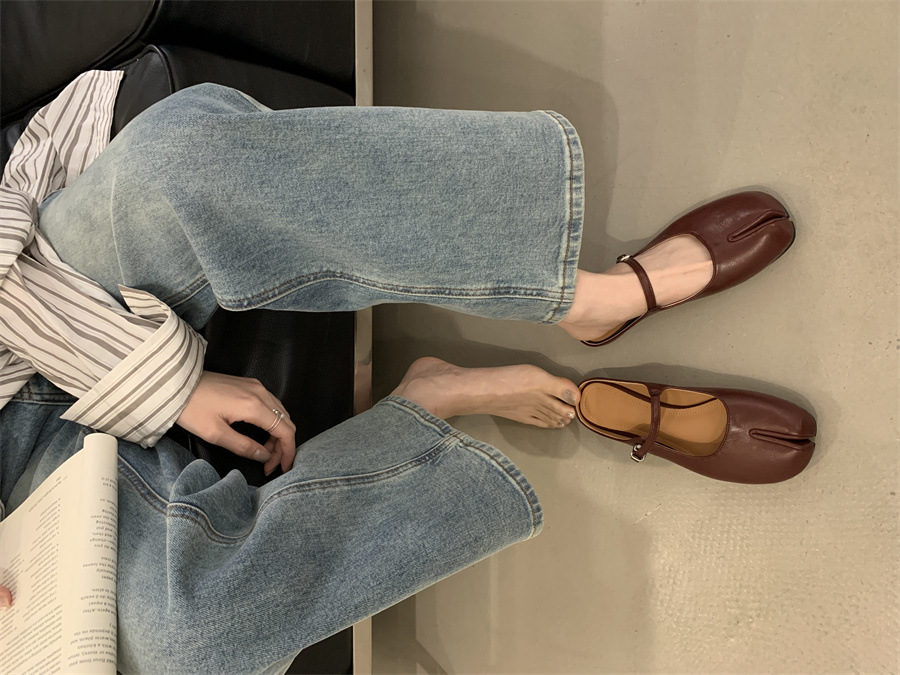 평평한 밑창 스플릿 토 피그 트로터 신발은 발가락 하프 슬리퍼 여성 신발 2025 새 여름 프랑스 슬립 온 레드 슈즈를 덮었습니다.스토어 가기