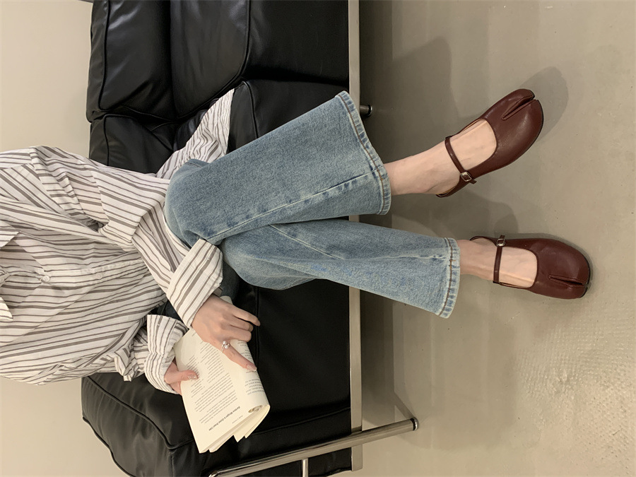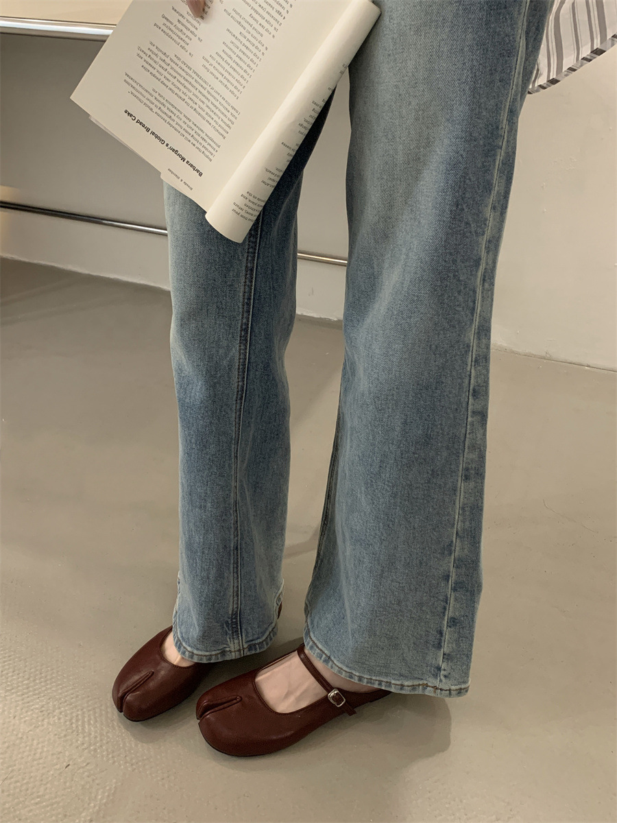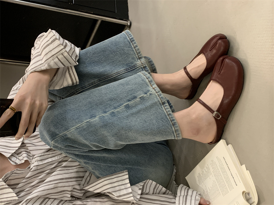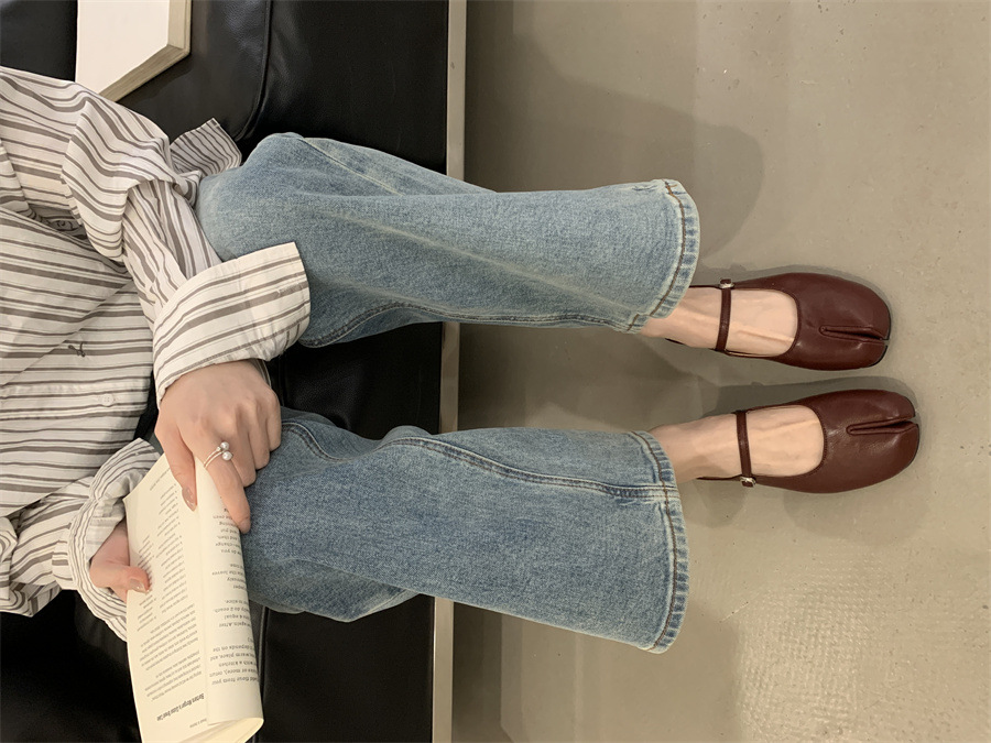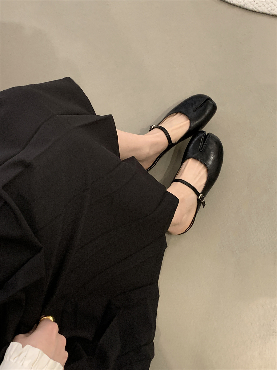 평평한 밑창 스플릿 토 피그 트로터 신발은 발가락 하프 슬리퍼 여성 신발 2025 새 여름 프랑스 슬립 온 레드 슈즈를 덮었습니다.스토어 가기