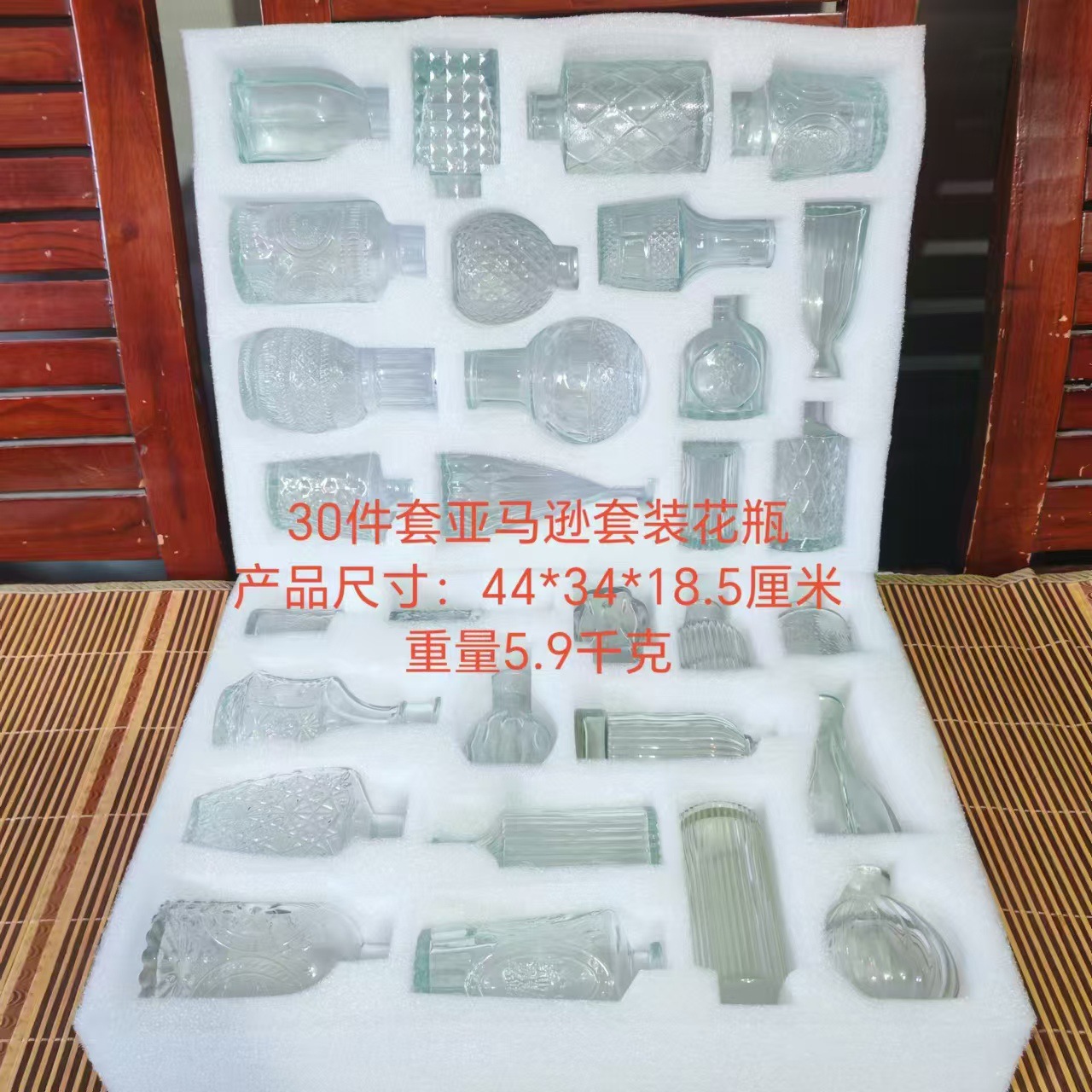 재고 도매 유럽 스타일의 새로운 아마존, 바람 그물 붉은 꽃 꽃병 국경 세트 유리 거실 장식 장식품스토어 가기