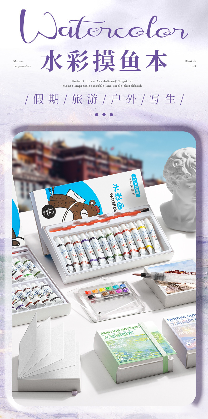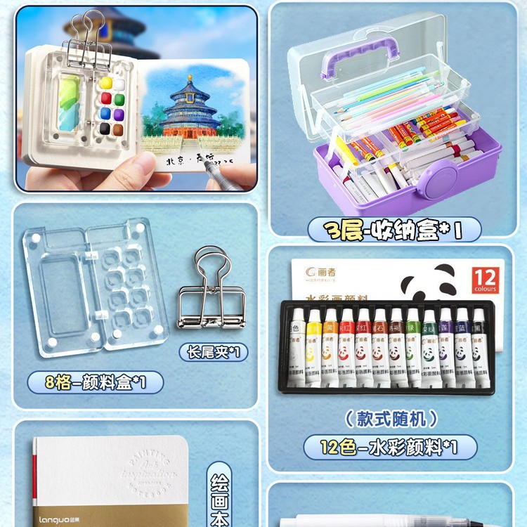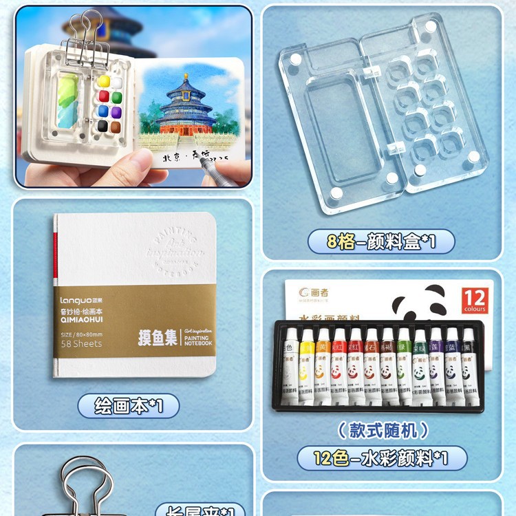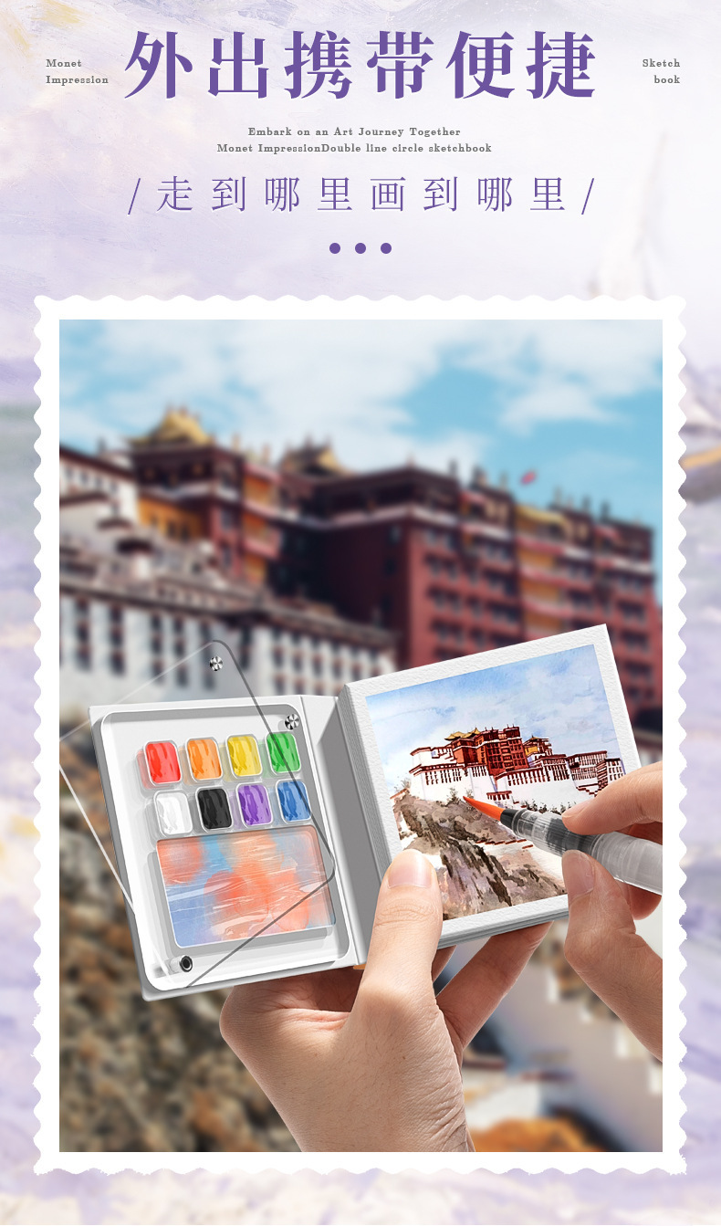 미니 수채화 안료 휴대용 어린이 스케치 여행 컬러 페인팅 그림-책 컬러 톤 작은 스케치 패드 세트 컬러 페인팅스토어 가기