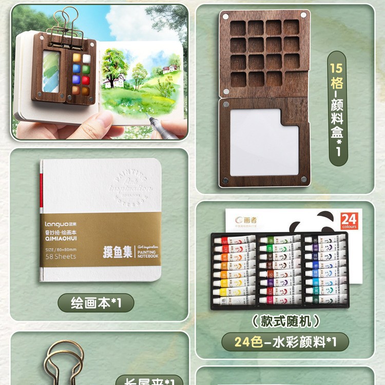 • [월넛 스케치 세트] 15그리드 물감 상자 + 24색 물감 + 그림책/무료 수성펜