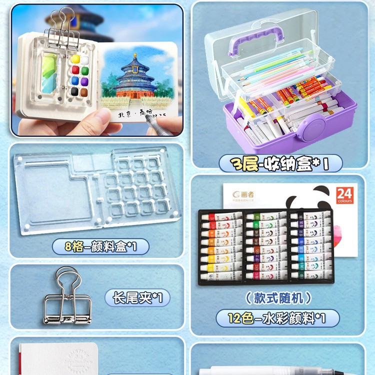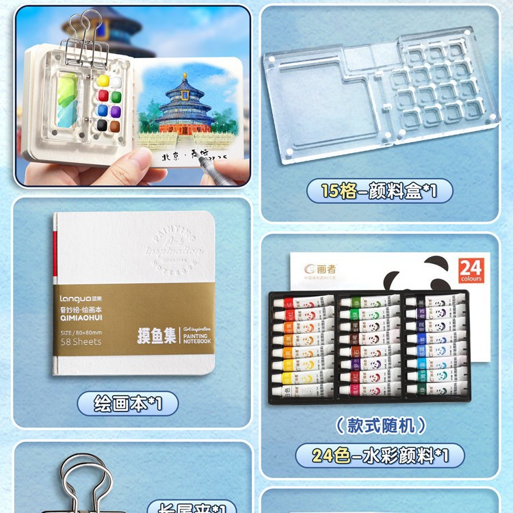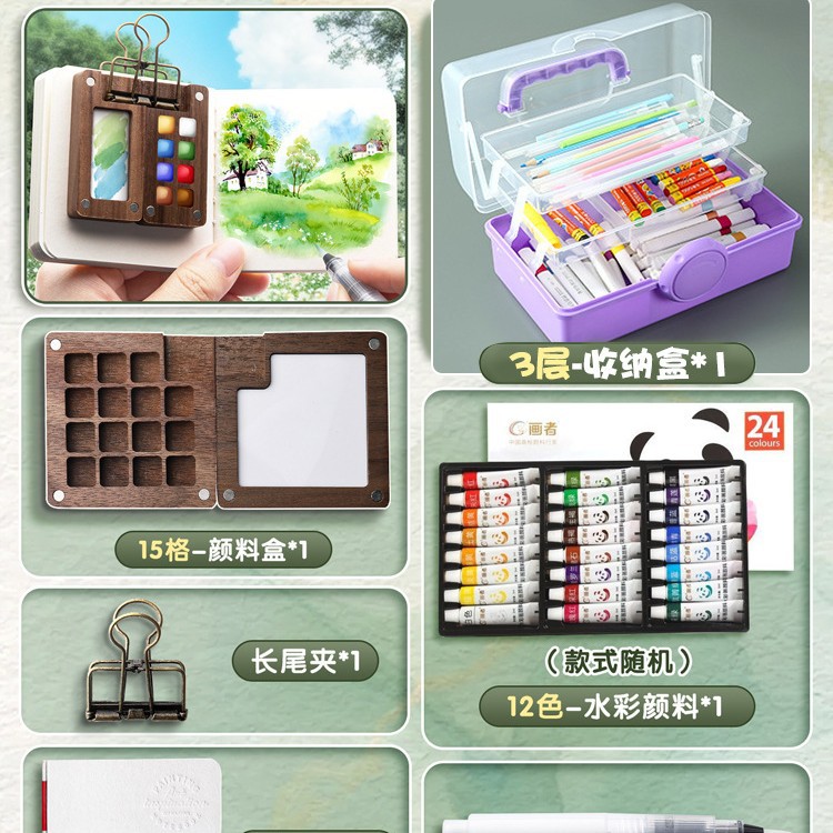 • [아크릴 스케치 세트] 15그리드 물감 상자 + 24색 물감 + 그림책/무료 수성펜