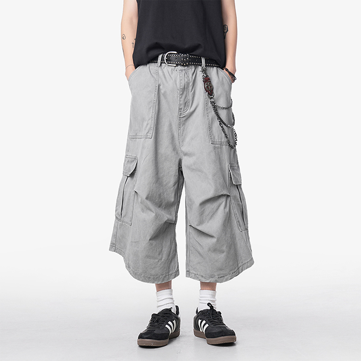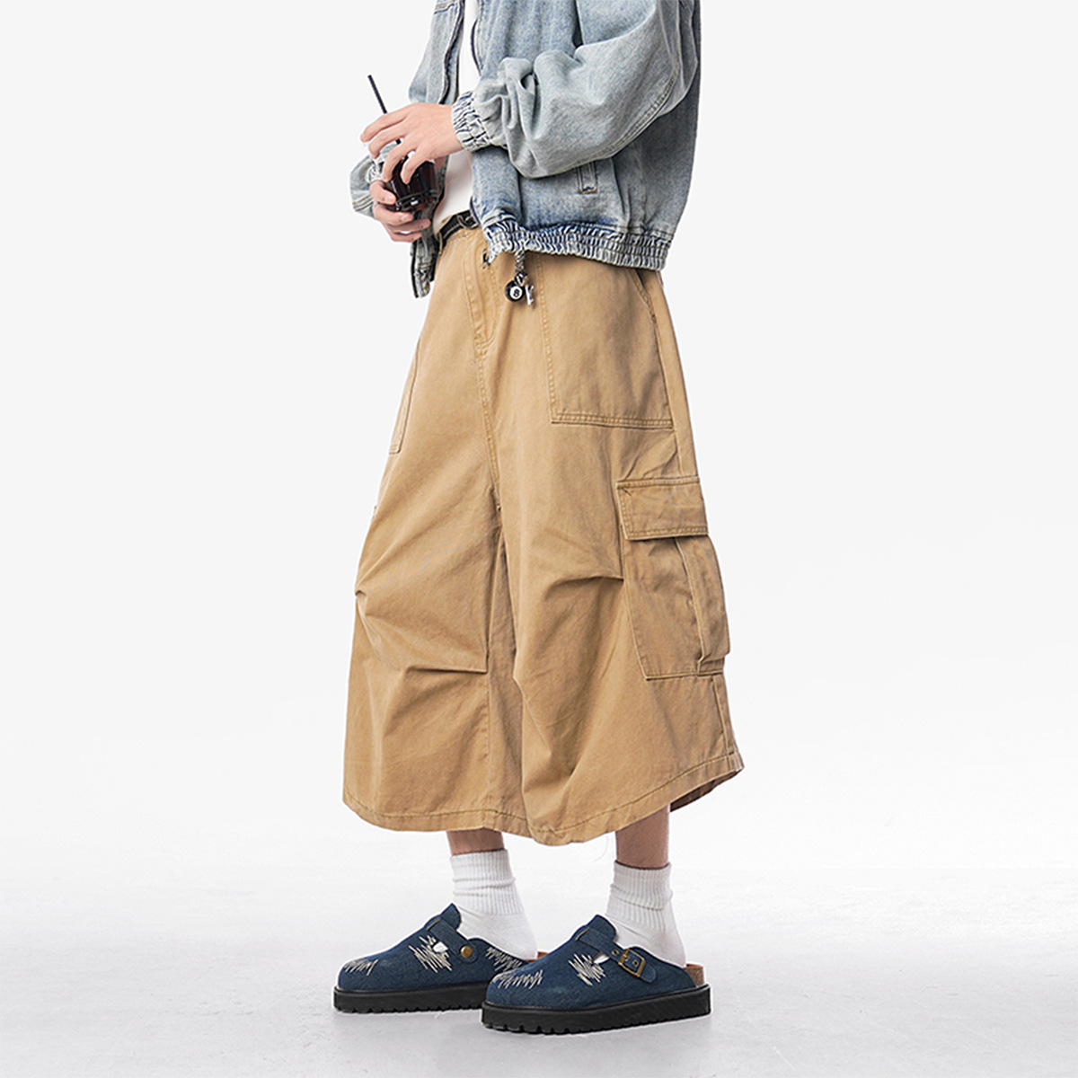 멀티 포켓 카프리 팬츠 남자 2025 년 여름 아메리칸 스타일 레트로 캐주얼 팬츠 클린 핏 루즈 스트레이트 툴링스토어 가기