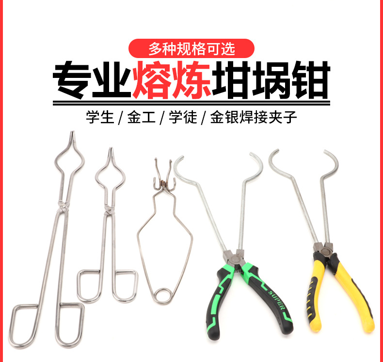 도가니 집게 용광로 긴 손잡이 고온 내성 용융 보울 클립 더블 링 미끄럼 방지 벨트 스프링 라운드 용 특수 집게스토어 가기