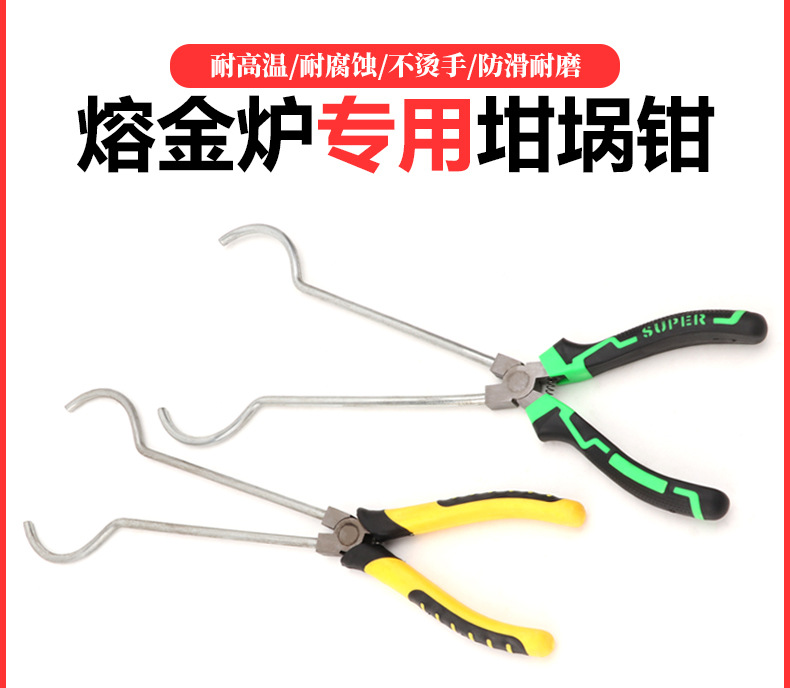 도가니 집게 용광로 긴 손잡이 고온 내성 용융 보울 클립 더블 링 미끄럼 방지 벨트 스프링 라운드 용 특수 집게