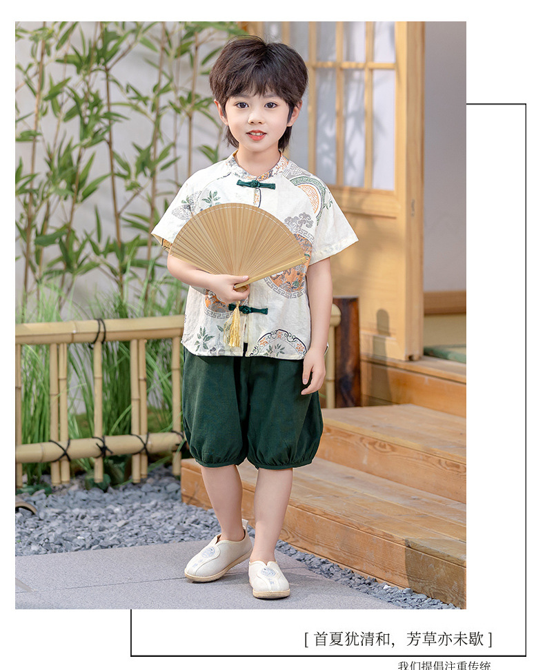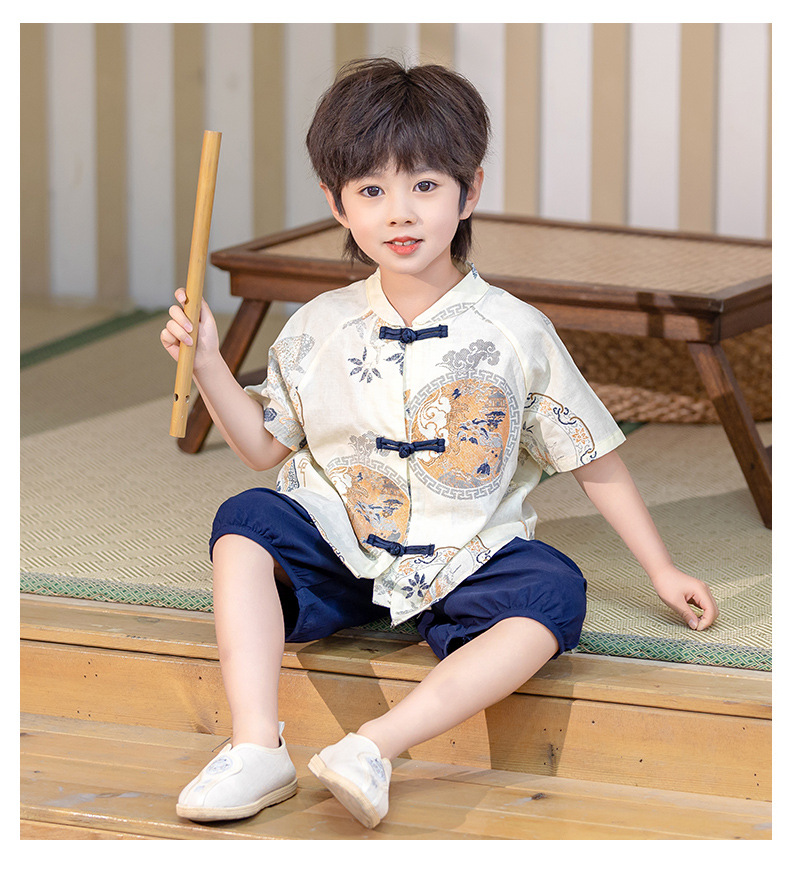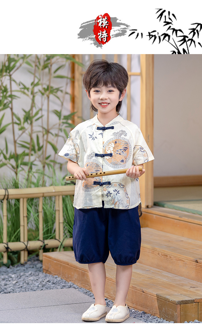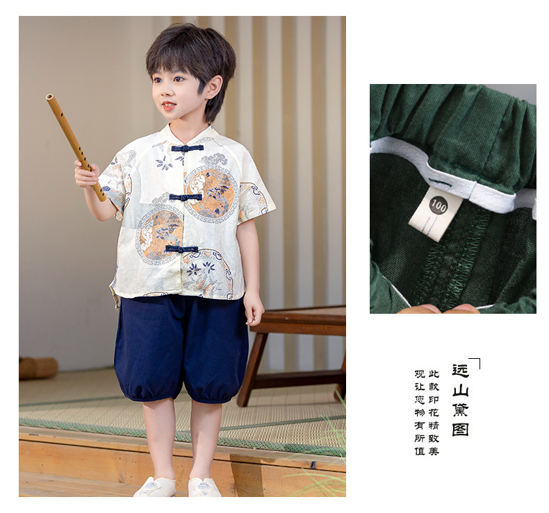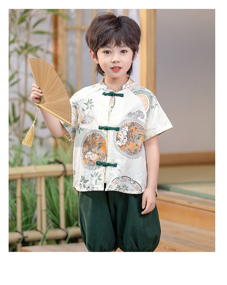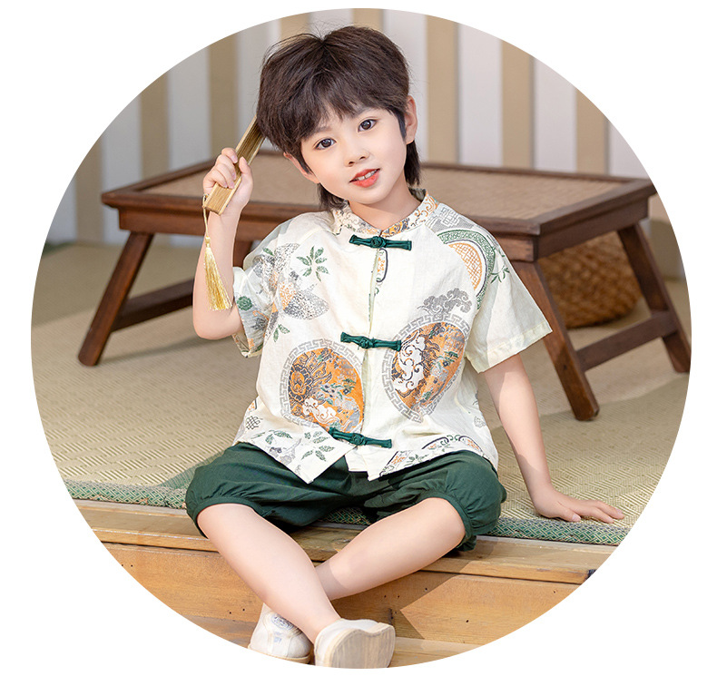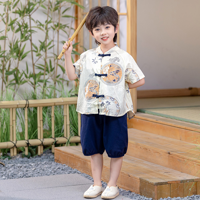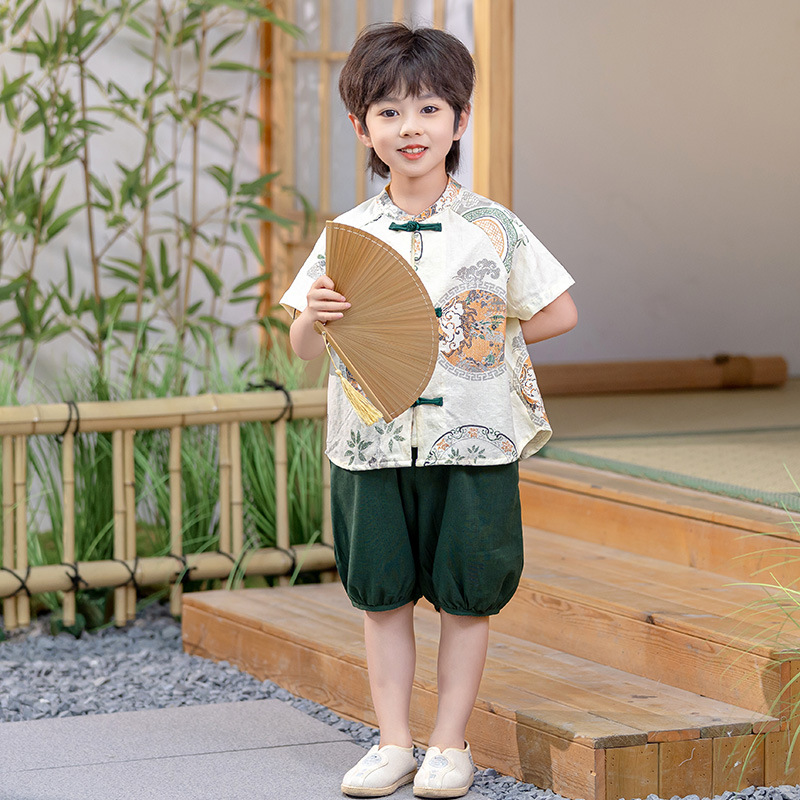 남아 한복 당복 여름 반팔 세트 어린이 신중국풍 남아 한복 한살 의상 시원하고 통기성 좋고 부드러움