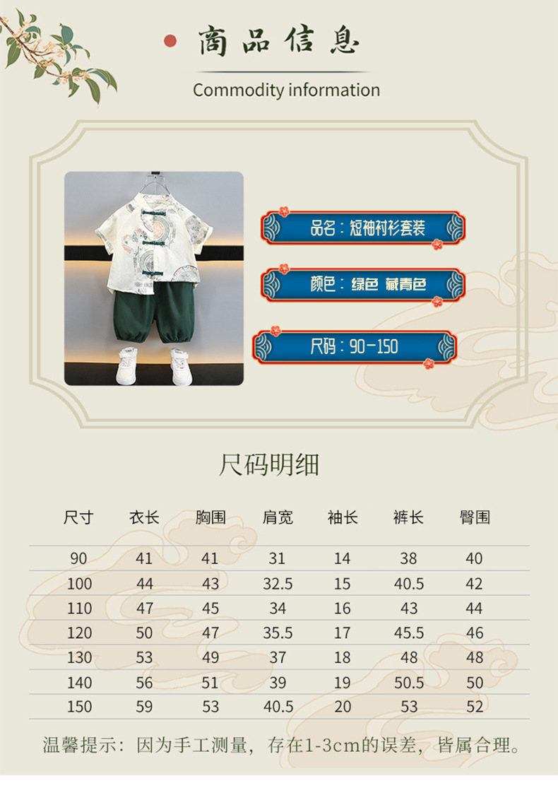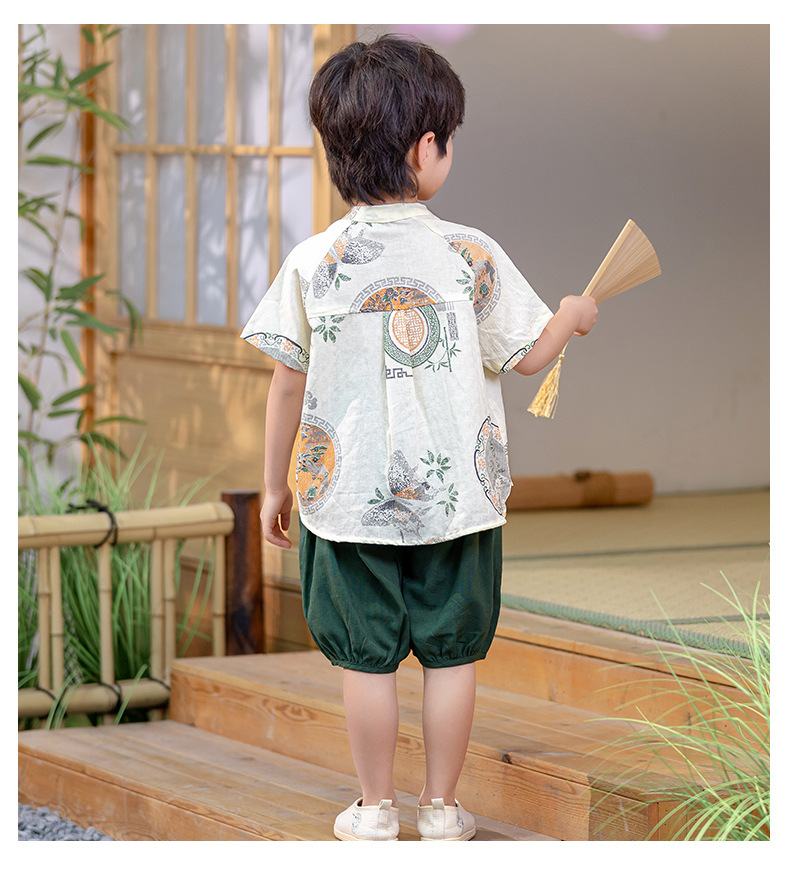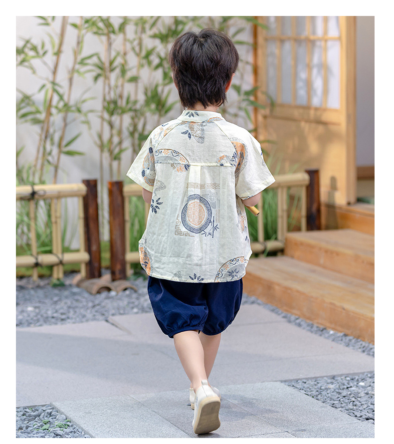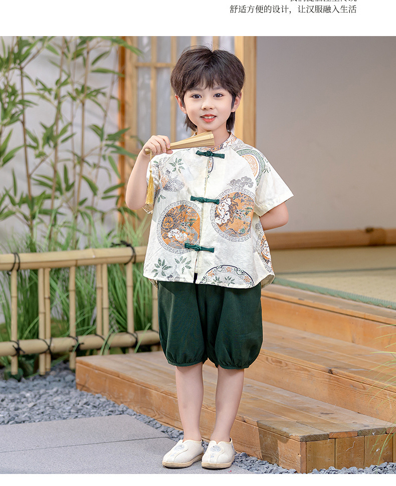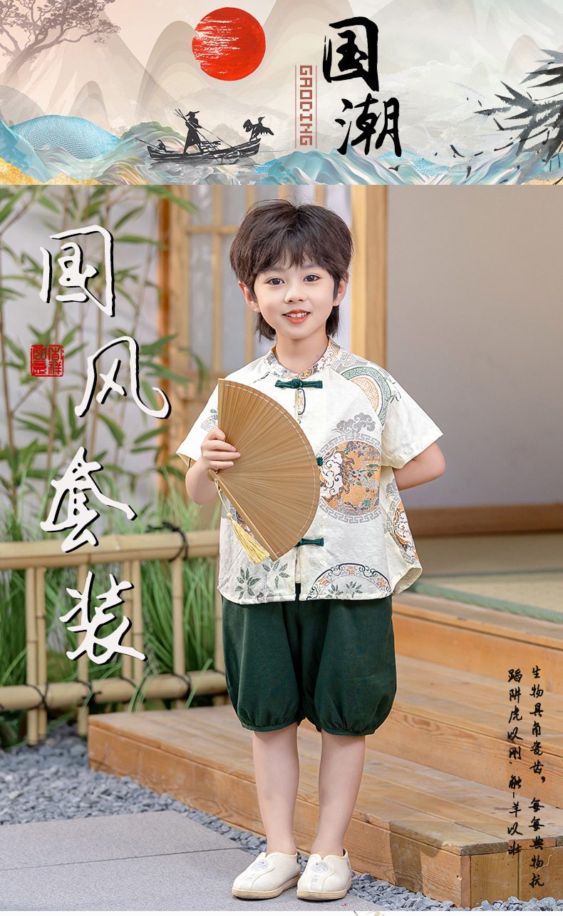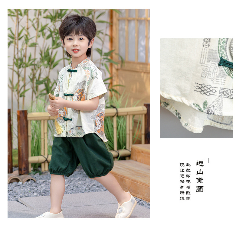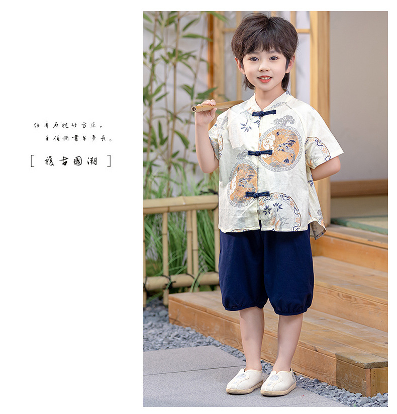 남아 한복 당복 여름 반팔 세트 어린이 신중국풍 남아 한복 한살 의상 시원하고 통기성 좋고 부드러움