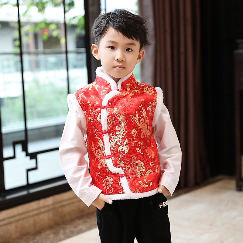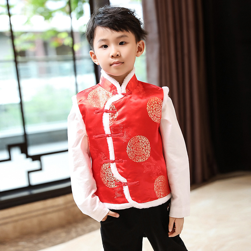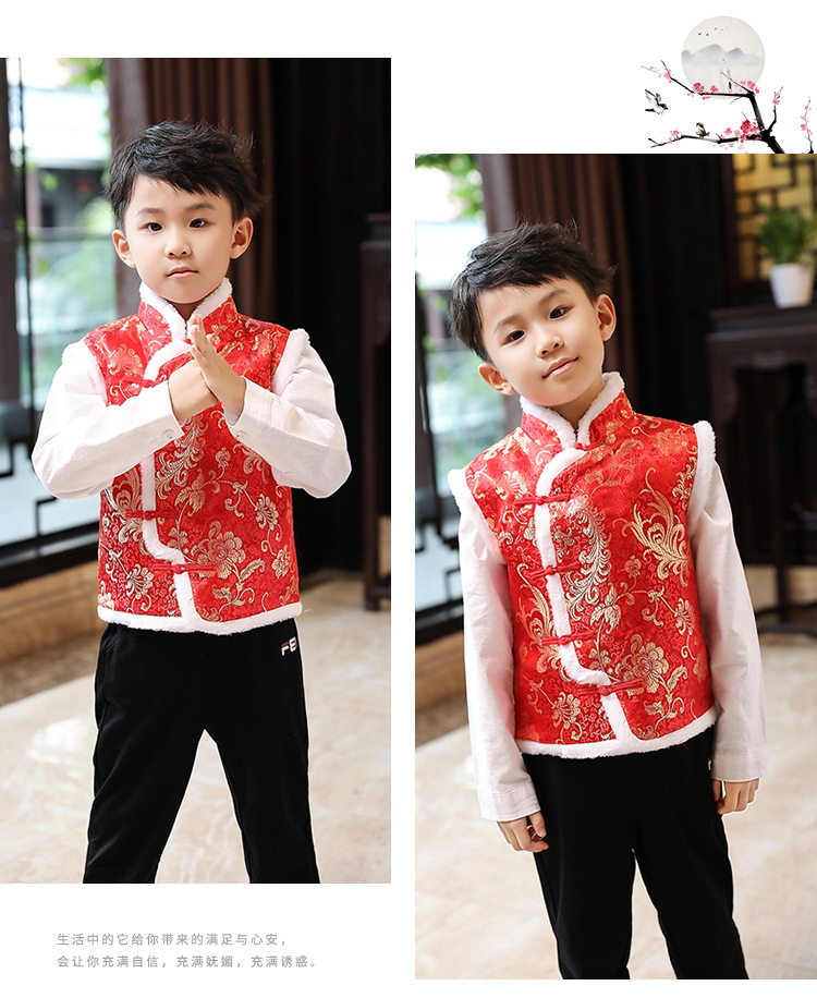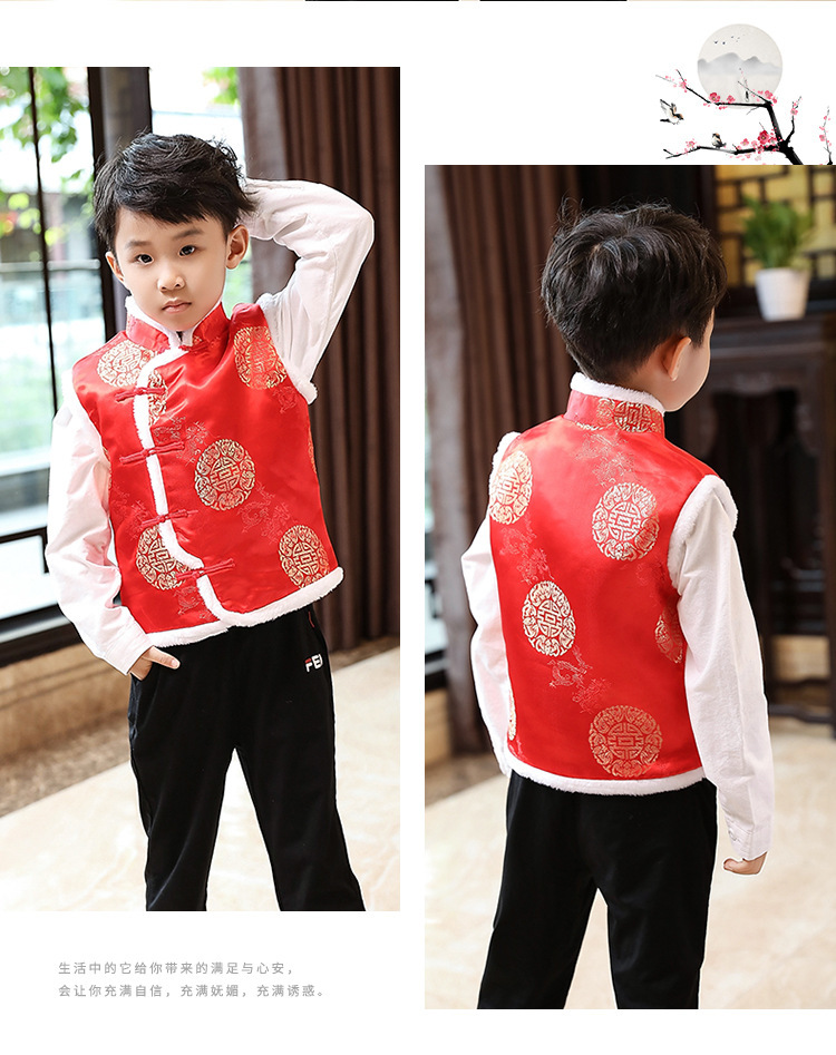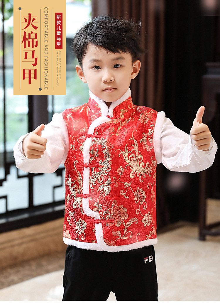 어린이 탕 세트 조끼 겨울 소년과 소녀 플러스 면봉 재킷 어린이 학교 설날 크리스마스 공연 신년 축제 조끼