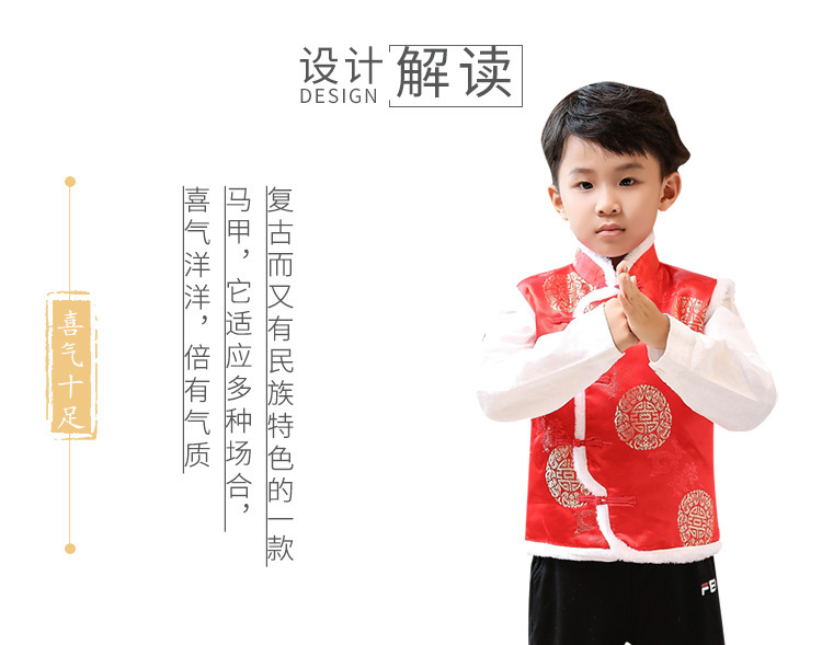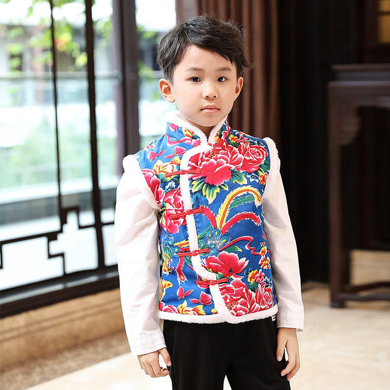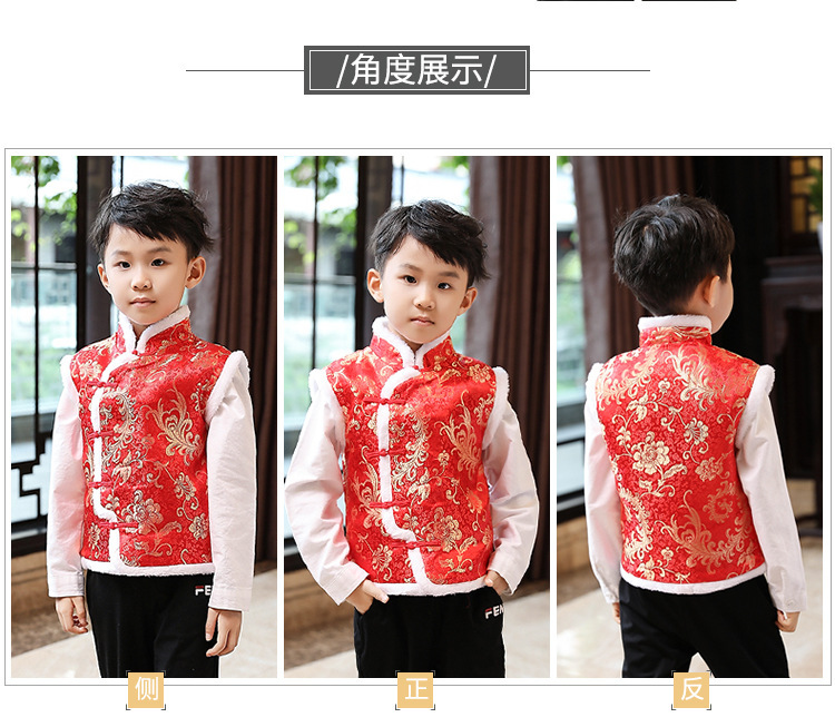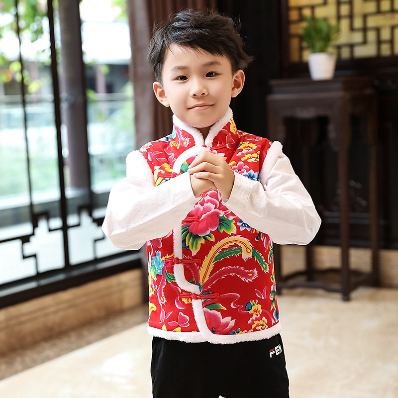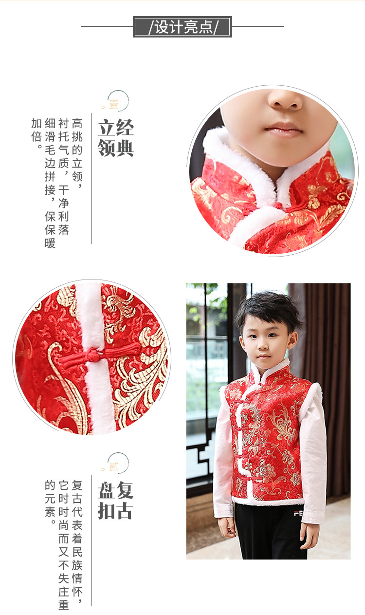 어린이 탕 세트 조끼 겨울 소년과 소녀 플러스 면봉 재킷 어린이 학교 설날 크리스마스 공연 신년 축제 조끼