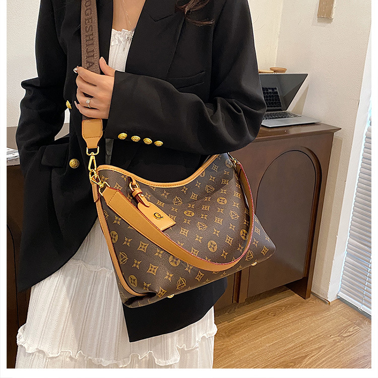 하이 엔드 대용량 토트 백 여성 2025 새로운 빈티지 인쇄 와이드 어깨 스트랩 여성용 어깨 가방 크로스 바디 백