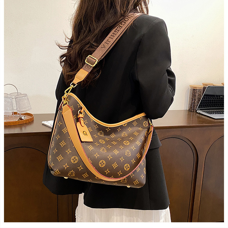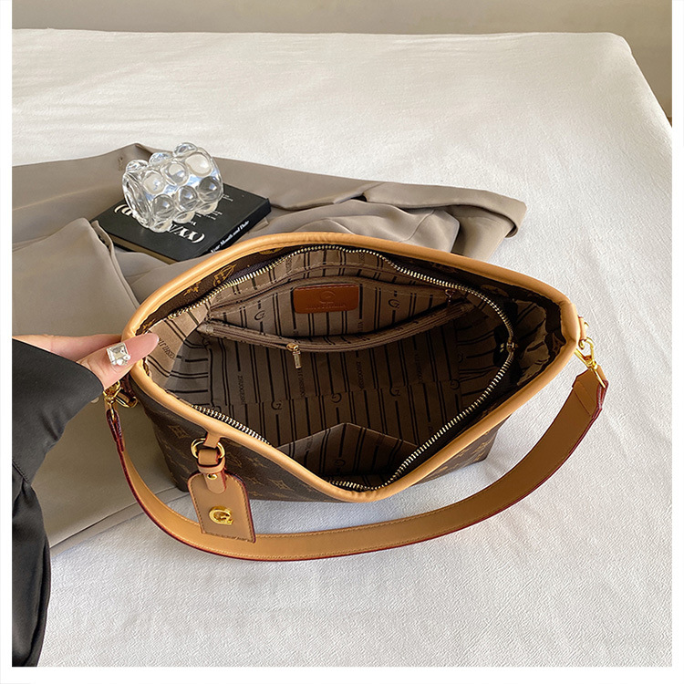 하이 엔드 대용량 토트 백 여성 2025 새로운 빈티지 인쇄 와이드 어깨 스트랩 여성용 어깨 가방 크로스 바디 백스토어 가기