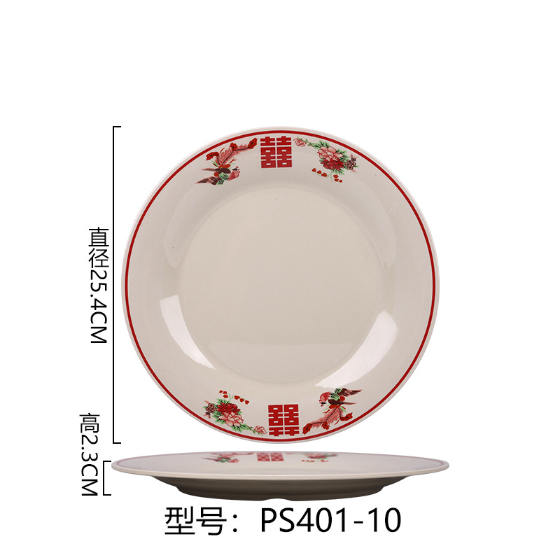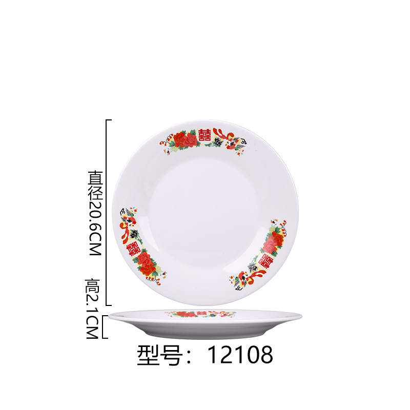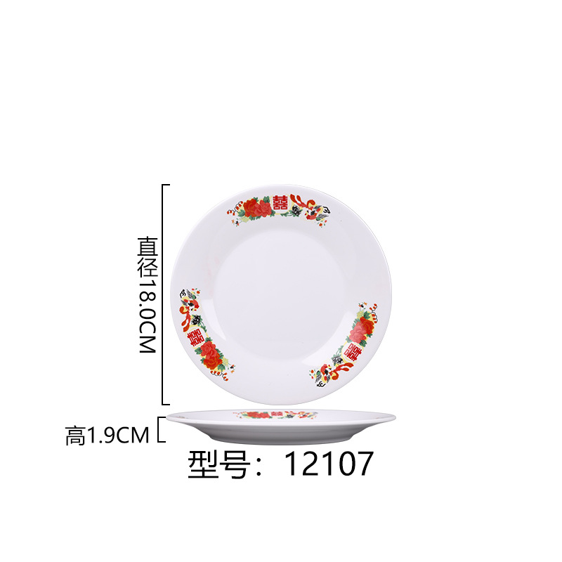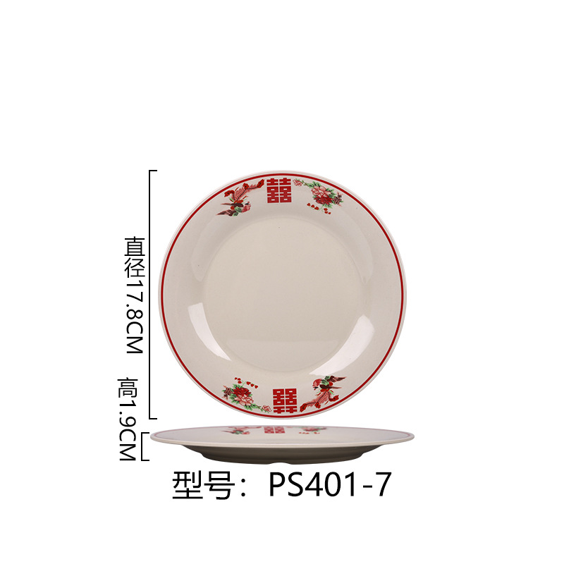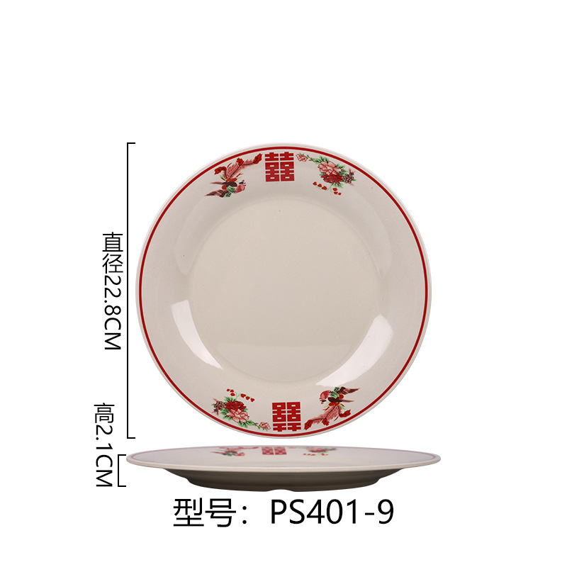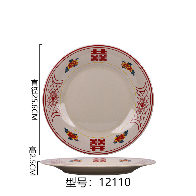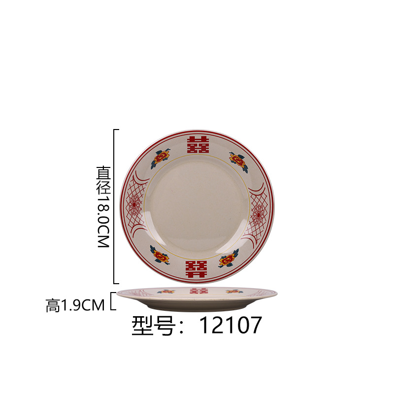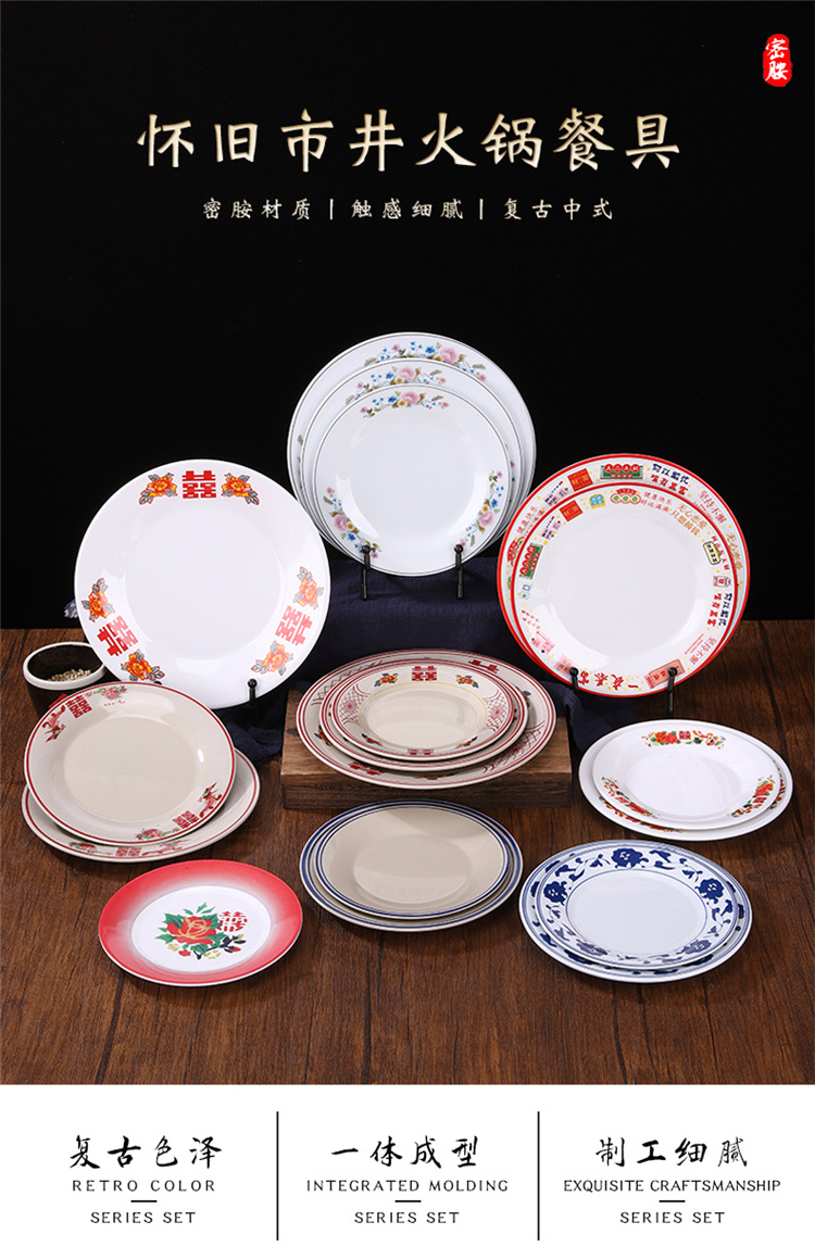 멜라민 플레이트 모방 도자기 디스크 항구 스타일 향수 차 레스토랑 요리 머리 쌀 해피 워드 플레이트 냄비 가장자리 스토브 식기 세트스토어 가기