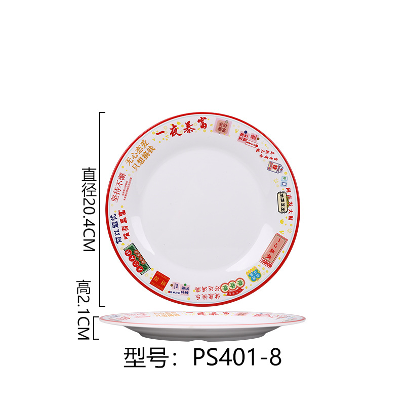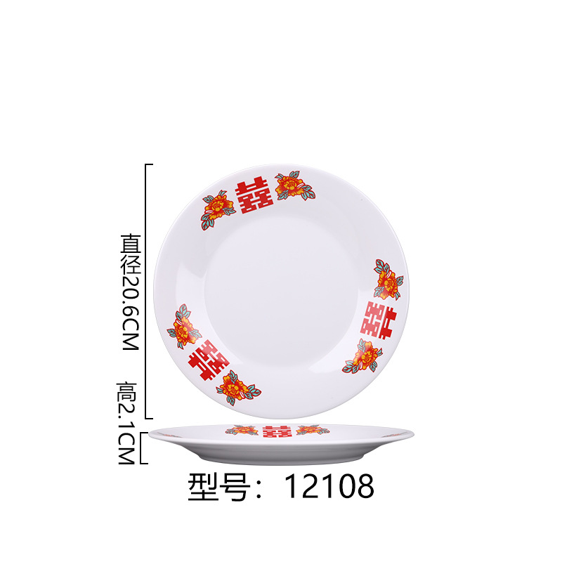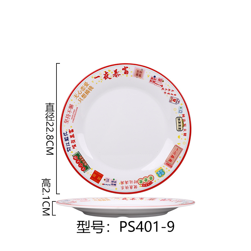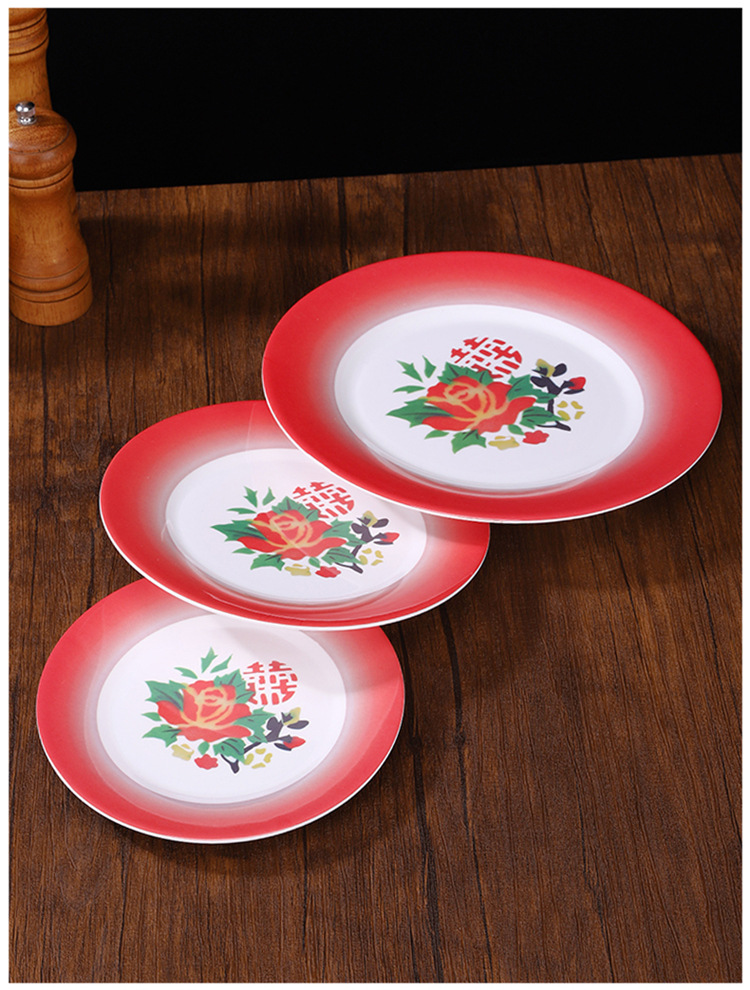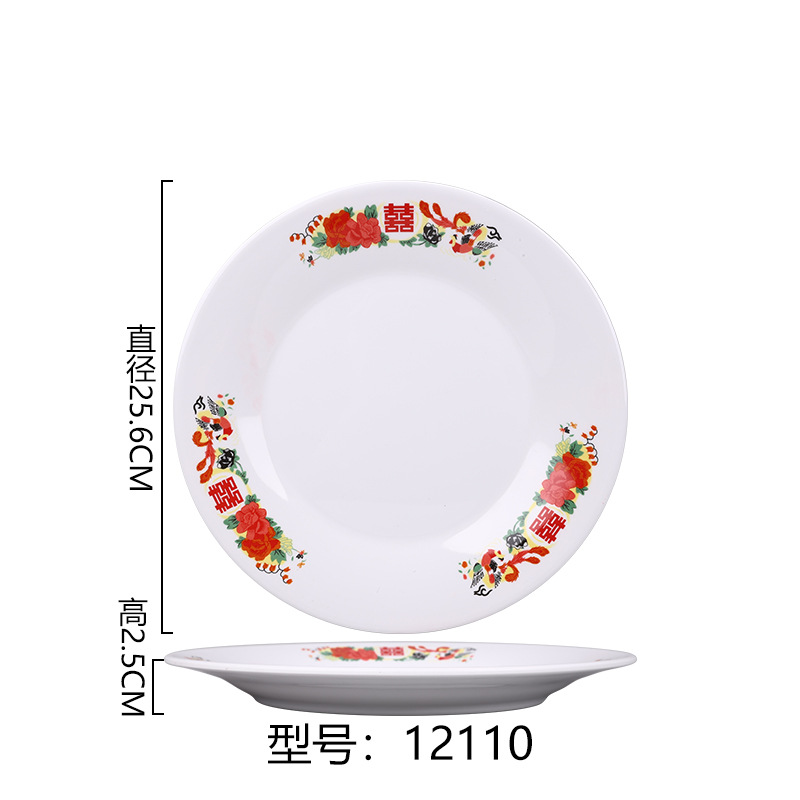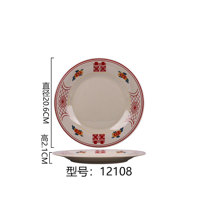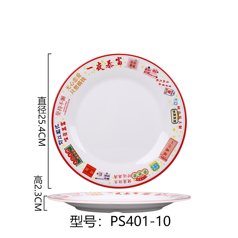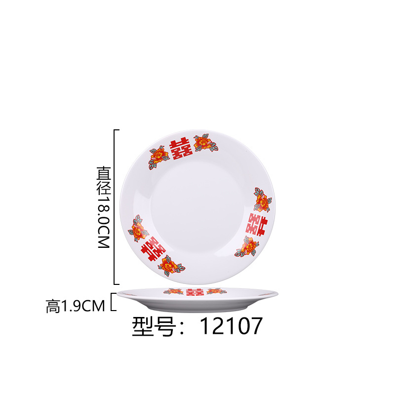 멜라민 플레이트 모방 도자기 디스크 항구 스타일 향수 차 레스토랑 요리 머리 쌀 해피 워드 플레이트 냄비 가장자리 스토브 식기 세트스토어 가기