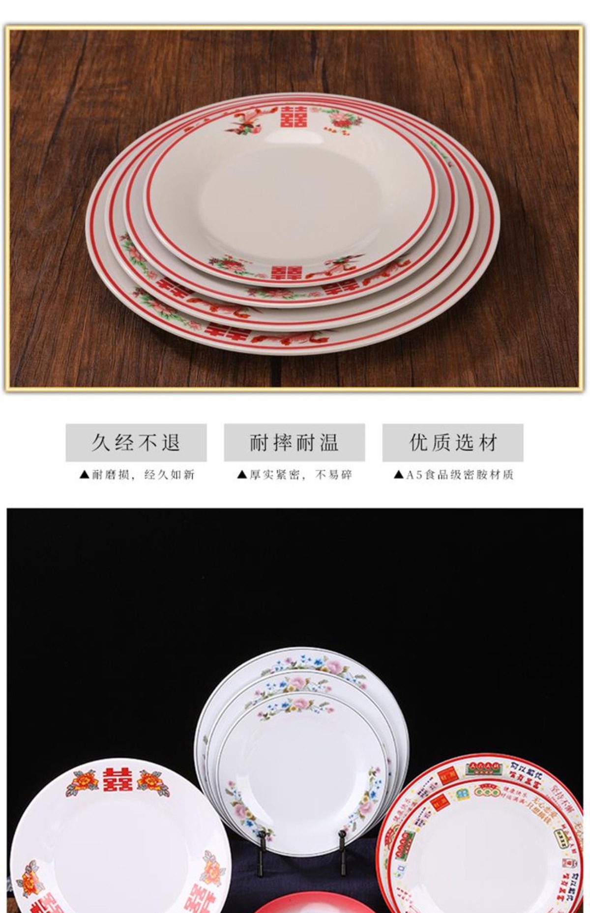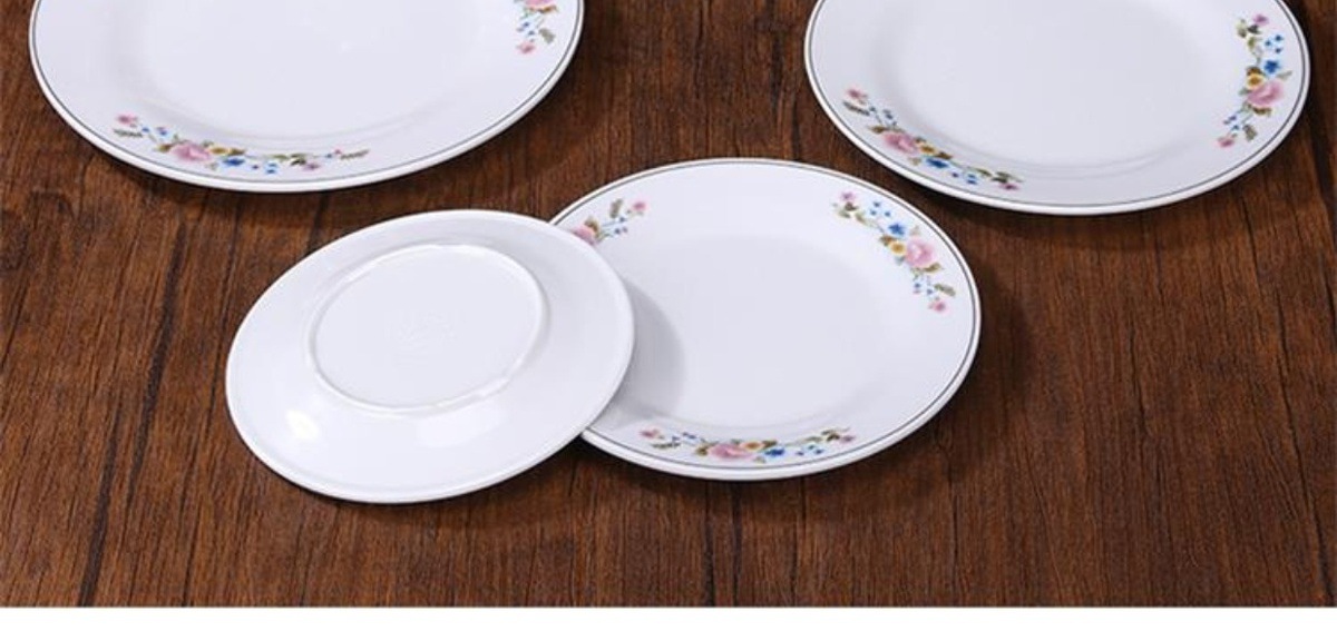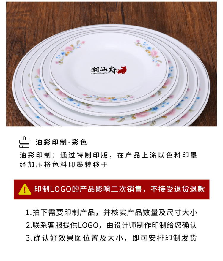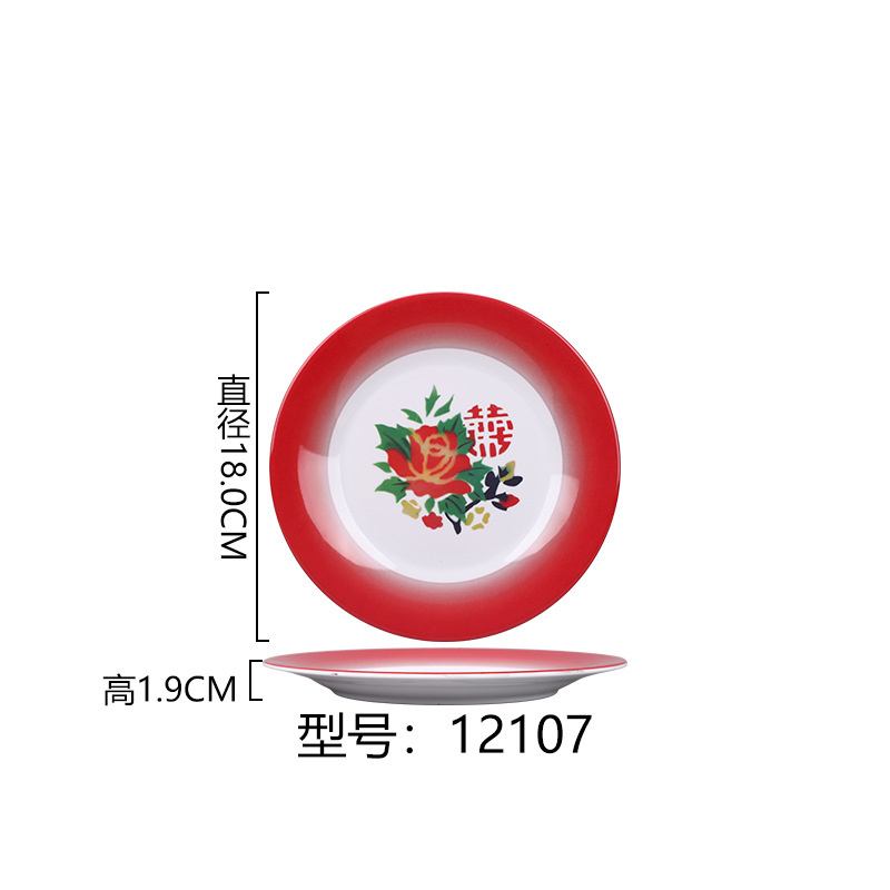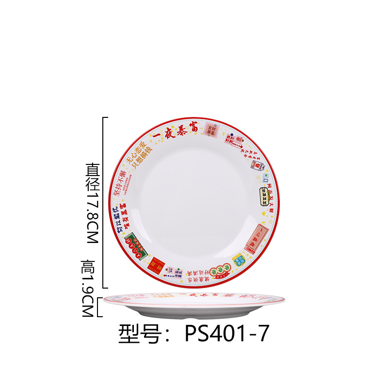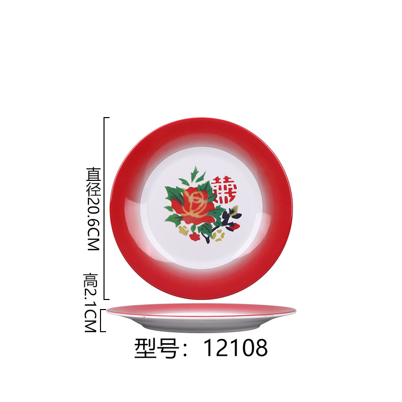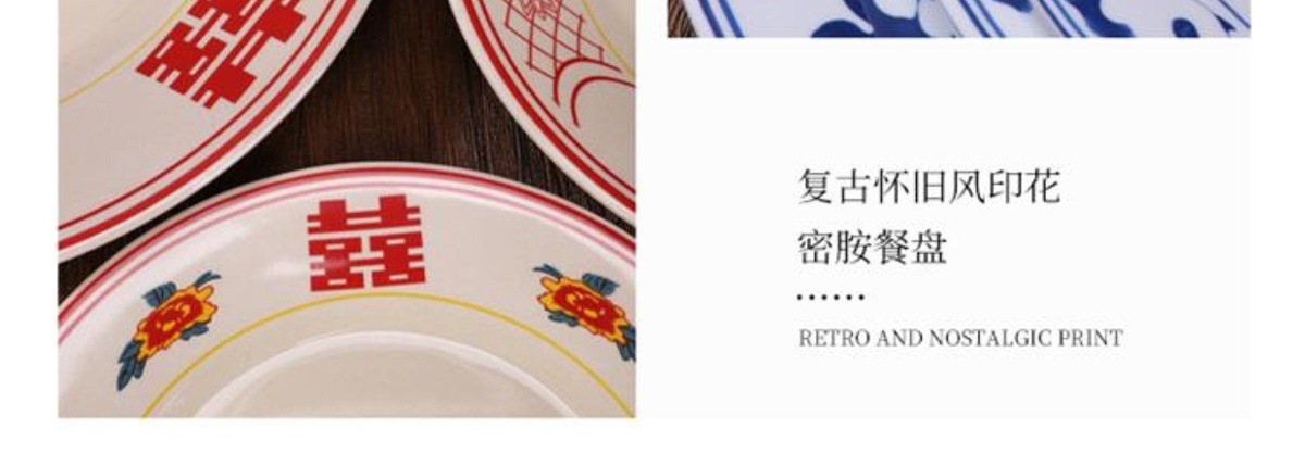 멜라민 플레이트 모방 도자기 디스크 항구 스타일 향수 차 레스토랑 요리 머리 쌀 해피 워드 플레이트 냄비 가장자리 스토브 식기 세트스토어 가기