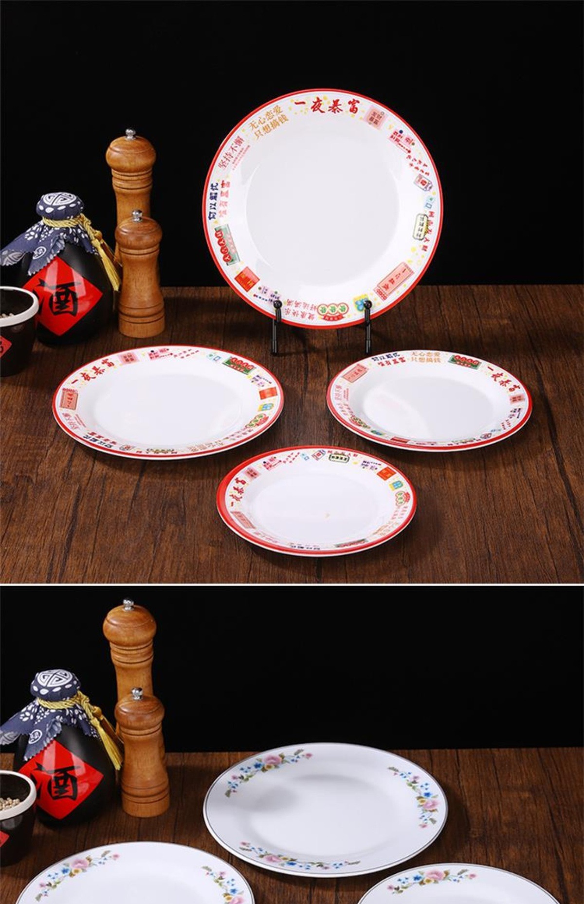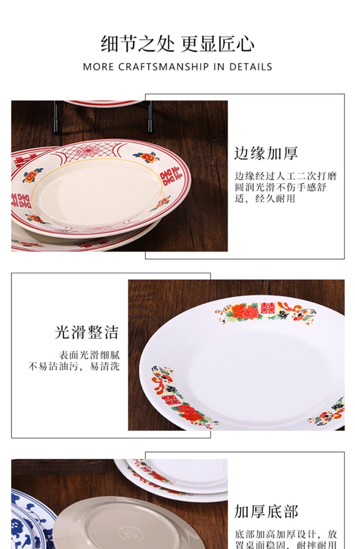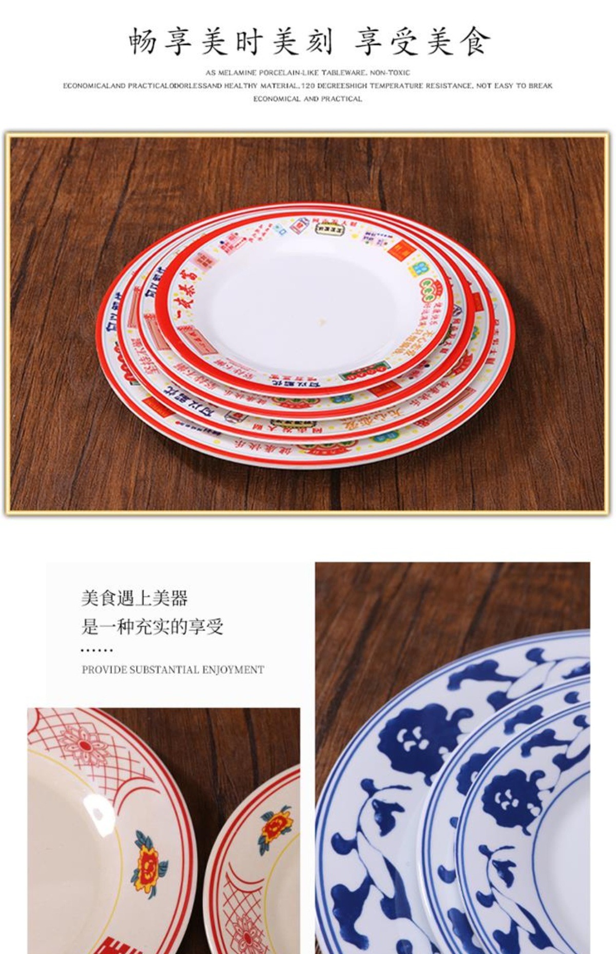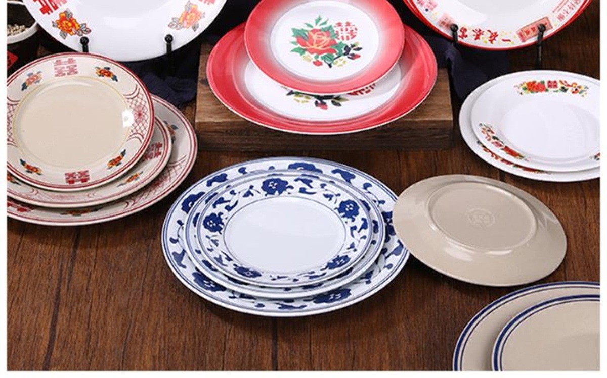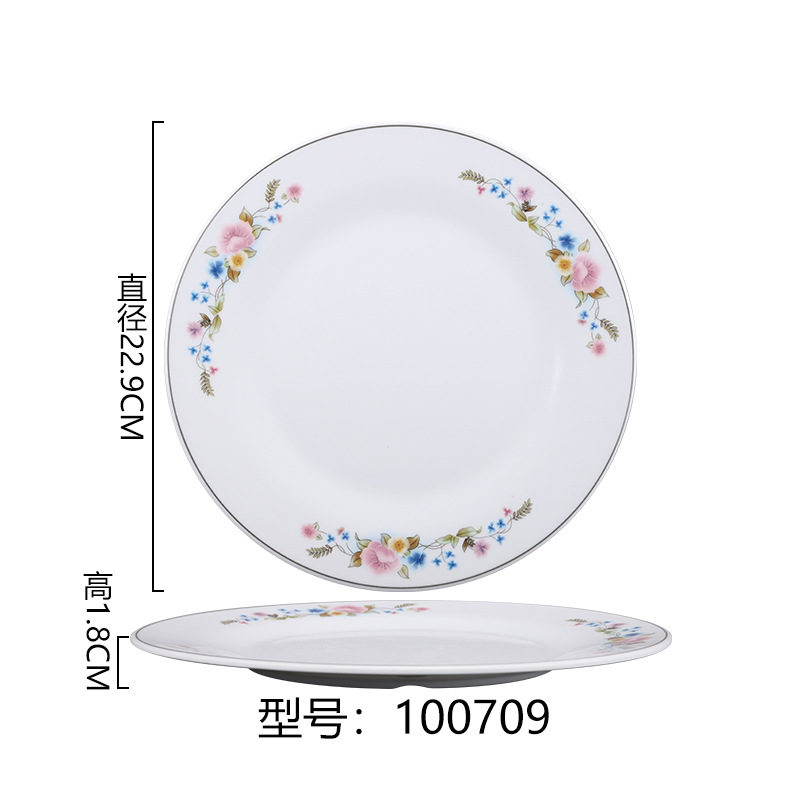 멜라민 플레이트 모방 도자기 디스크 항구 스타일 향수 차 레스토랑 요리 머리 쌀 해피 워드 플레이트 냄비 가장자리 스토브 식기 세트스토어 가기