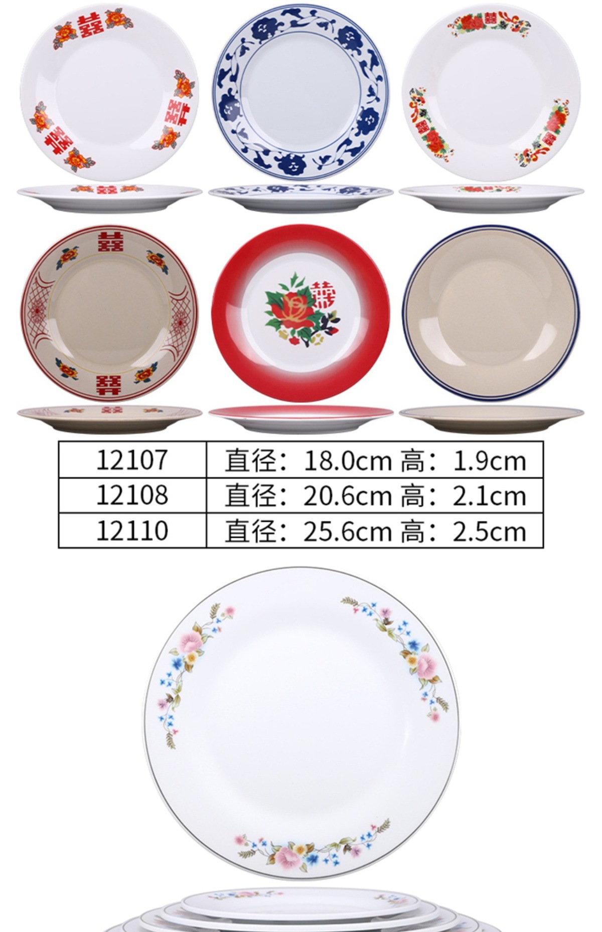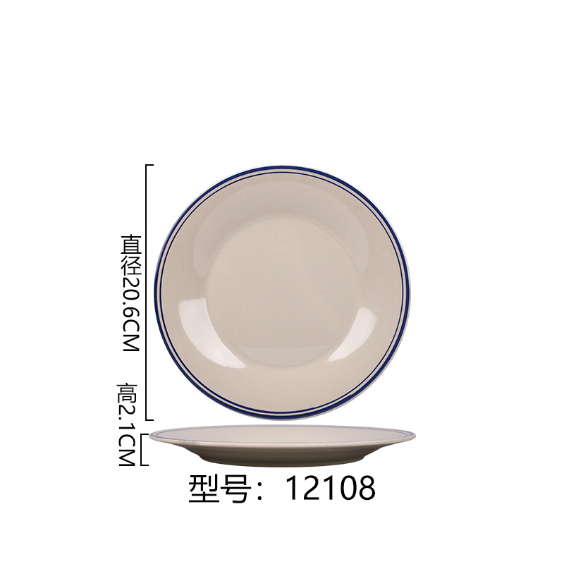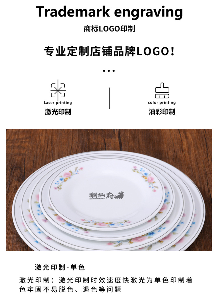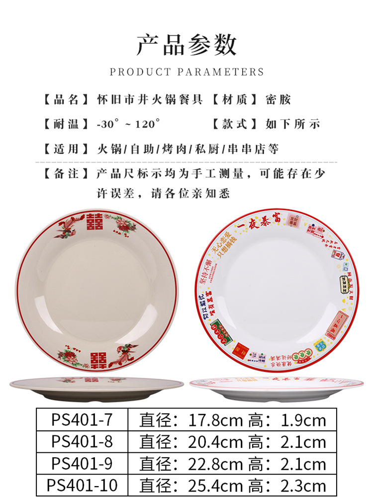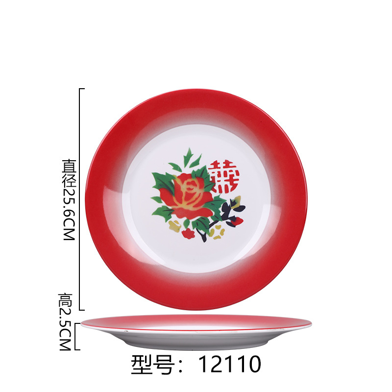 멜라민 플레이트 모방 도자기 디스크 항구 스타일 향수 차 레스토랑 요리 머리 쌀 해피 워드 플레이트 냄비 가장자리 스토브 식기 세트