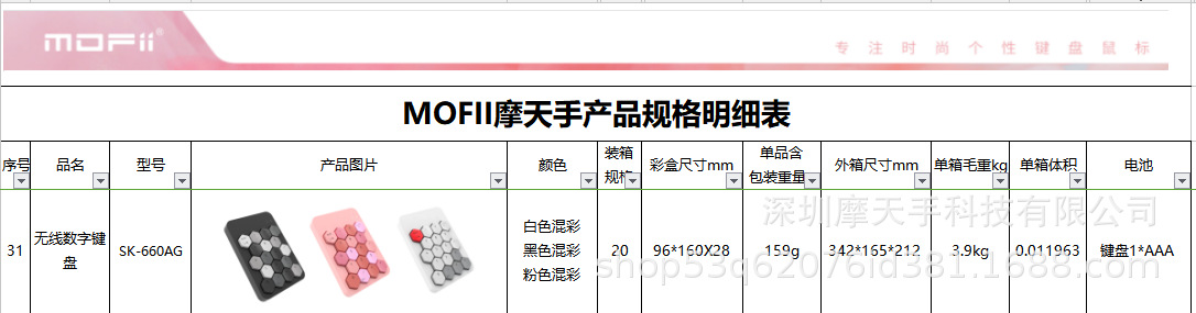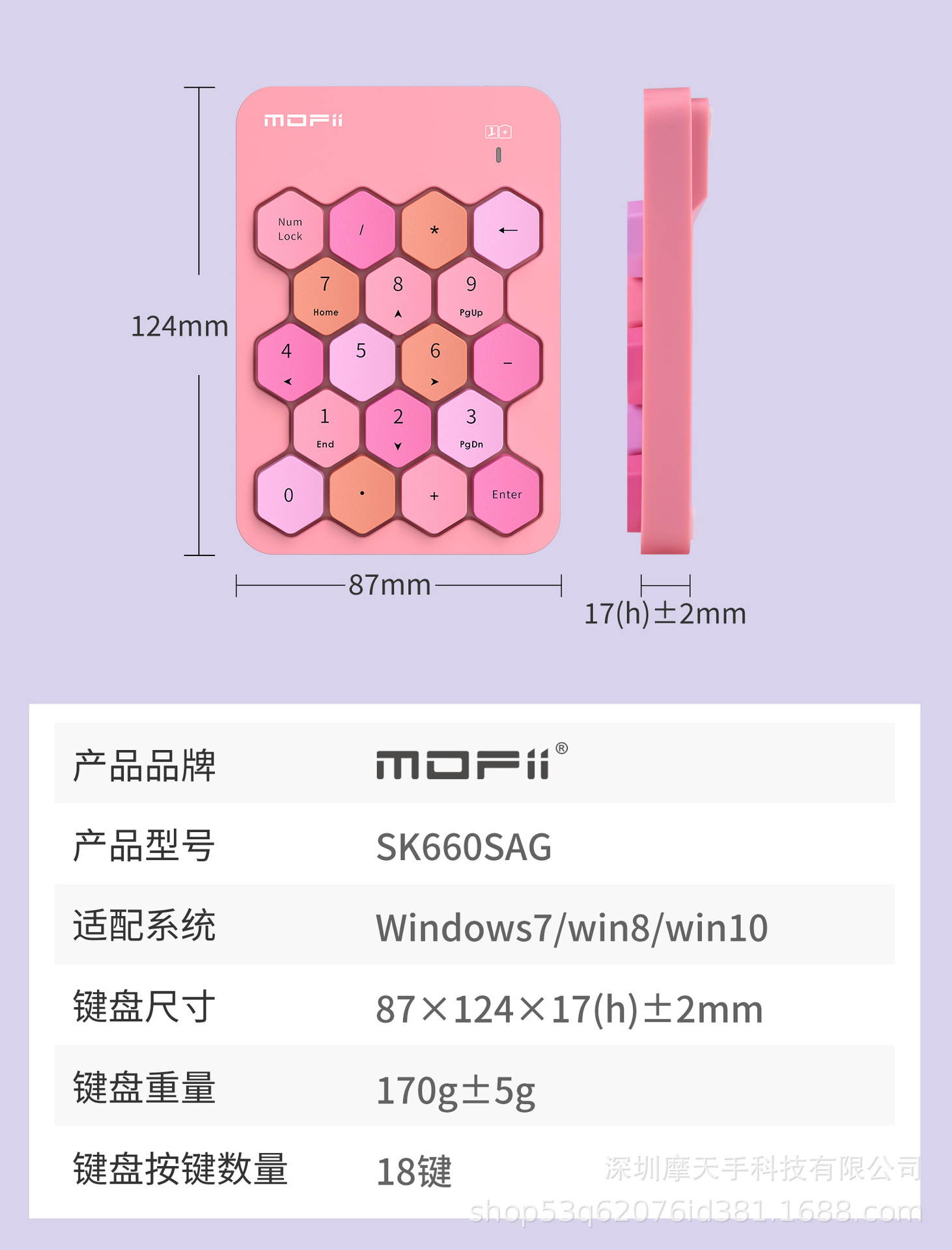 Mofii 마천루 손 재무 회계 키보드 소녀 높은 색상 가치 벌집 디지털 라이트 톤 키패드 공장 아울렛