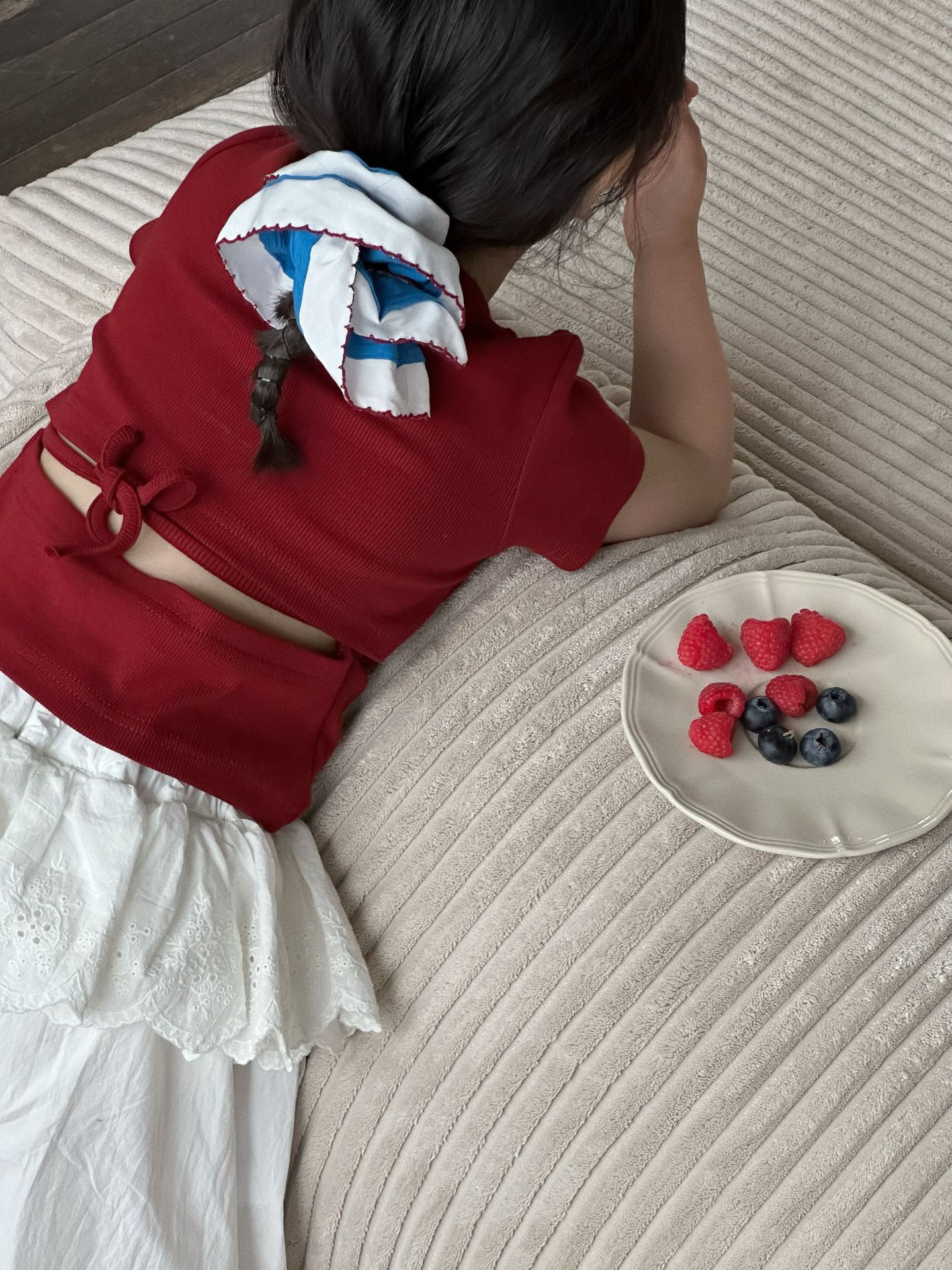 아동복 여름옷 2026 신상 여아 티셔츠 세트 여자 아기 심플 스타일 아동 반팔 안코라 레드 상의