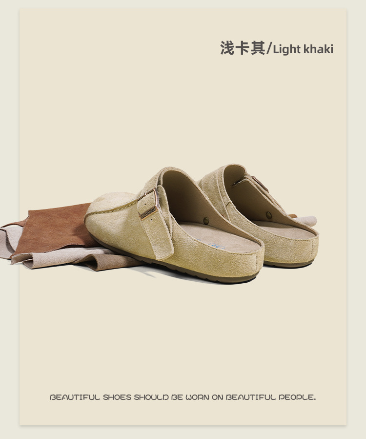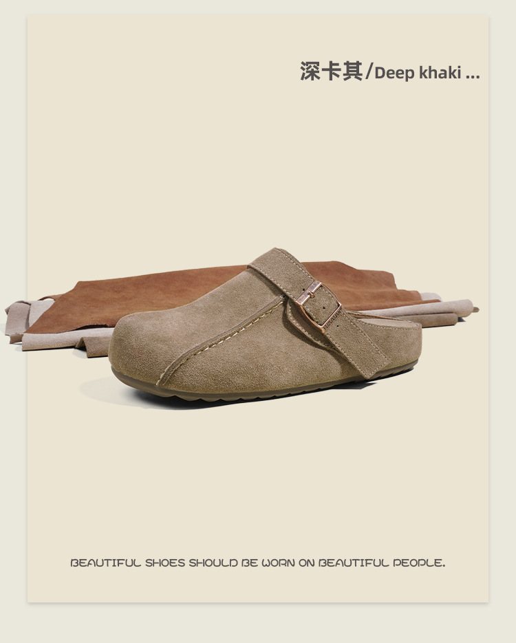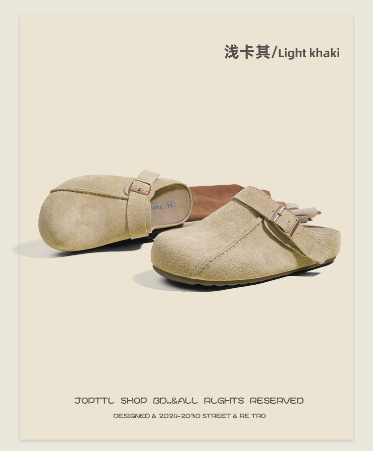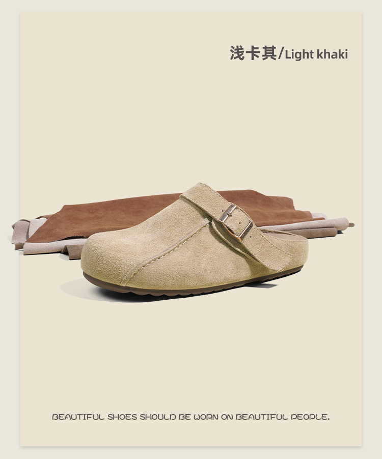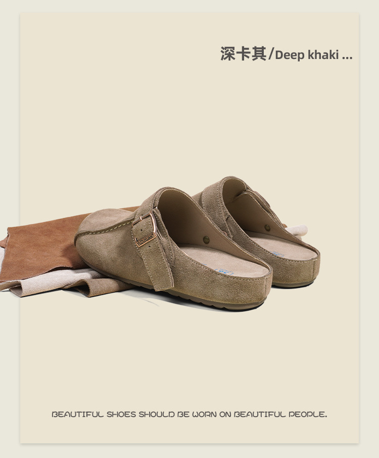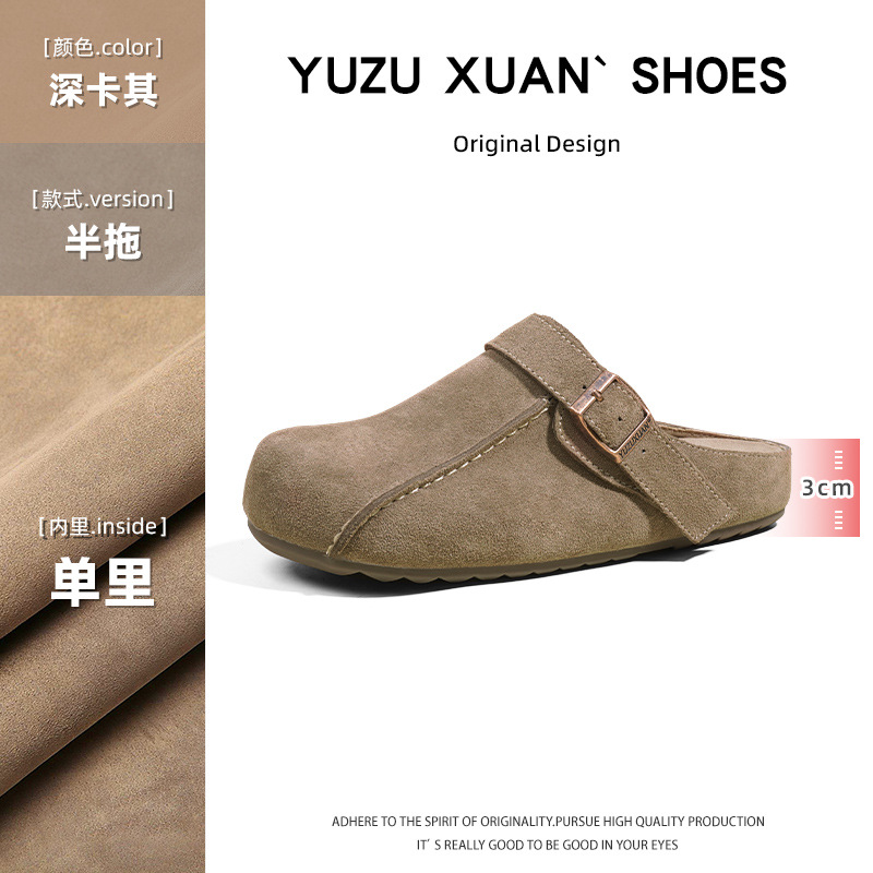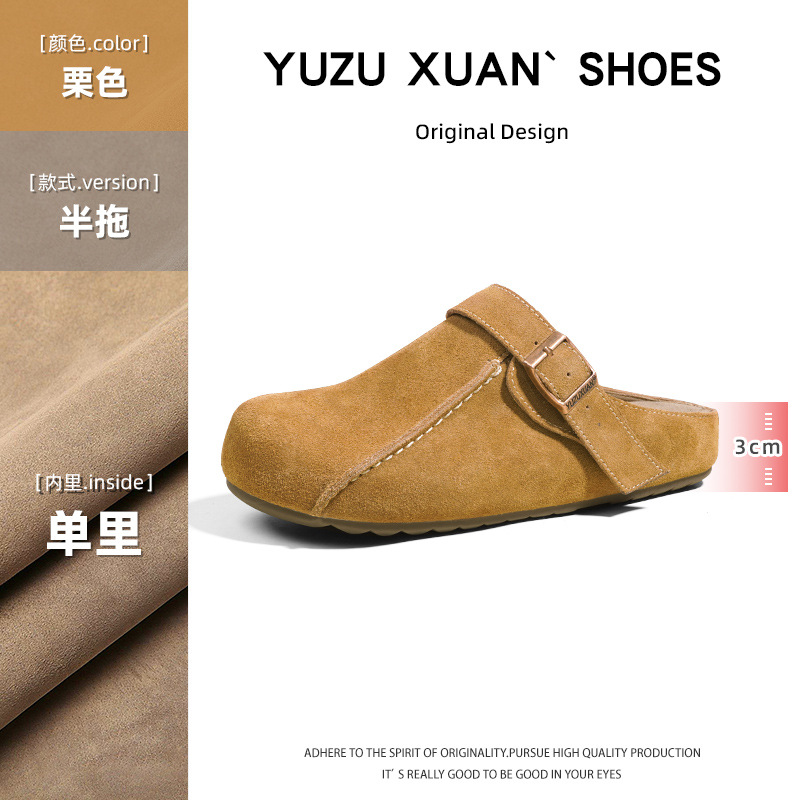 플랫폼 밑창 Birkenan 신발 외신을위한 여성용 하프 슬리퍼 봄 2025 새로운 정품 가죽 게으른 슬립 온 Birkenan 여성 신발