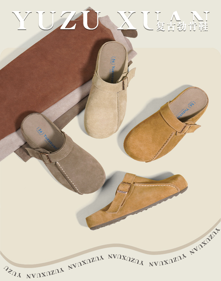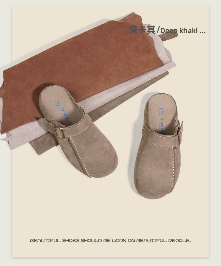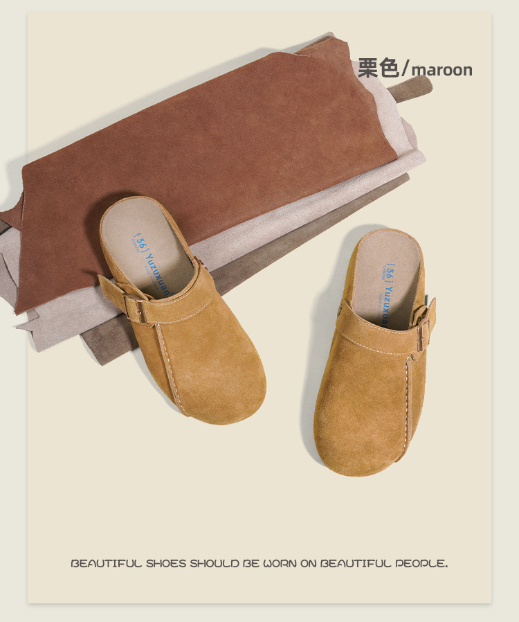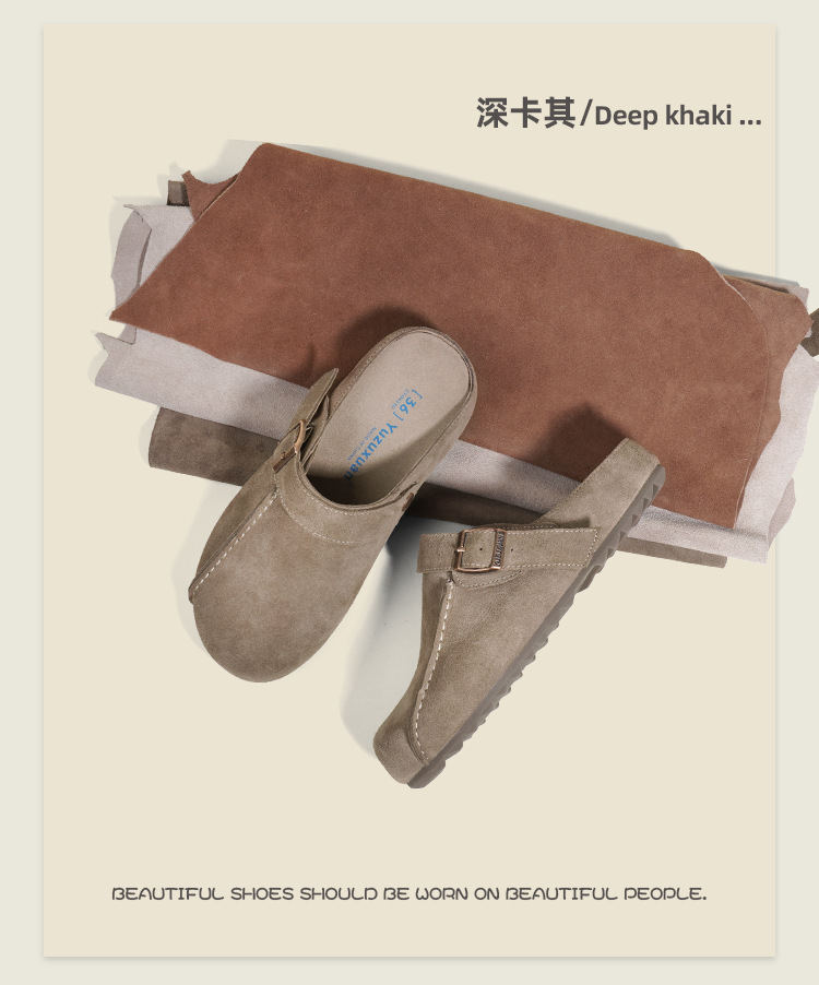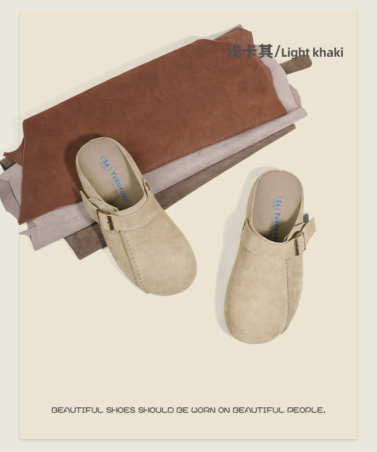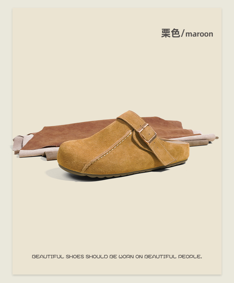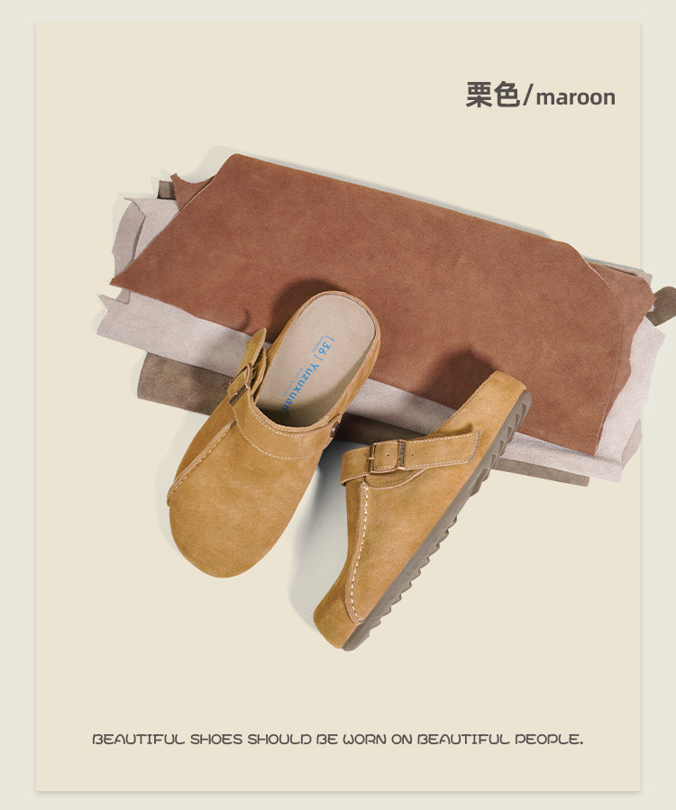 플랫폼 밑창 Birkenan 신발 외신을위한 여성용 하프 슬리퍼 봄 2025 새로운 정품 가죽 게으른 슬립 온 Birkenan 여성 신발