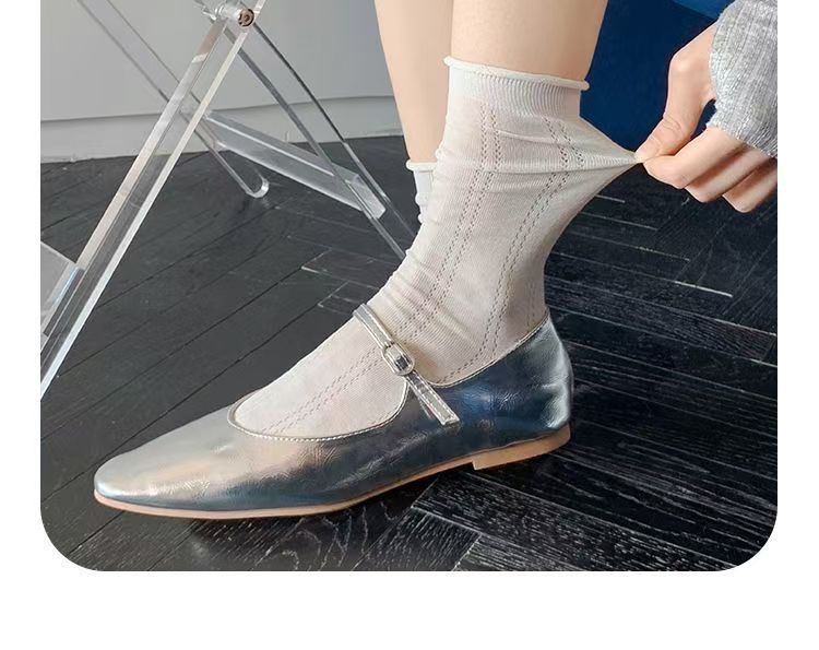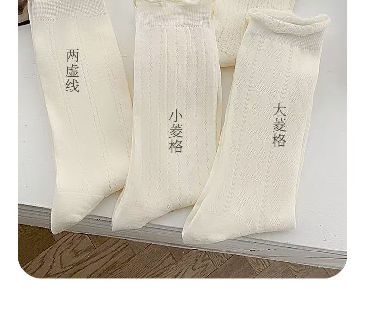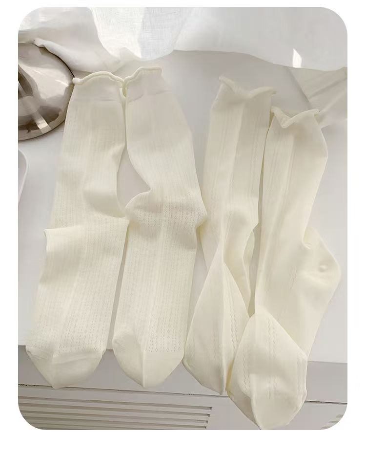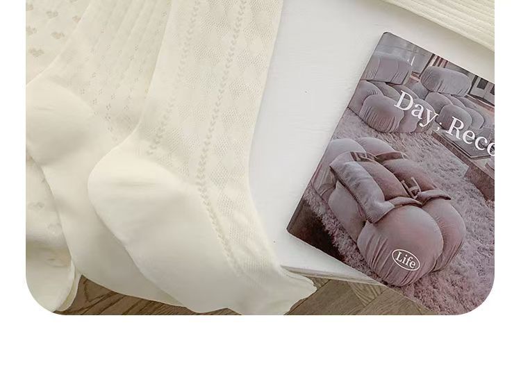 화이트 메리 제인 미드 튜브 양말 어린이 여름 얇은 스태킹 양말 메쉬 통기성 사랑스러운 발레 스타일 양말
