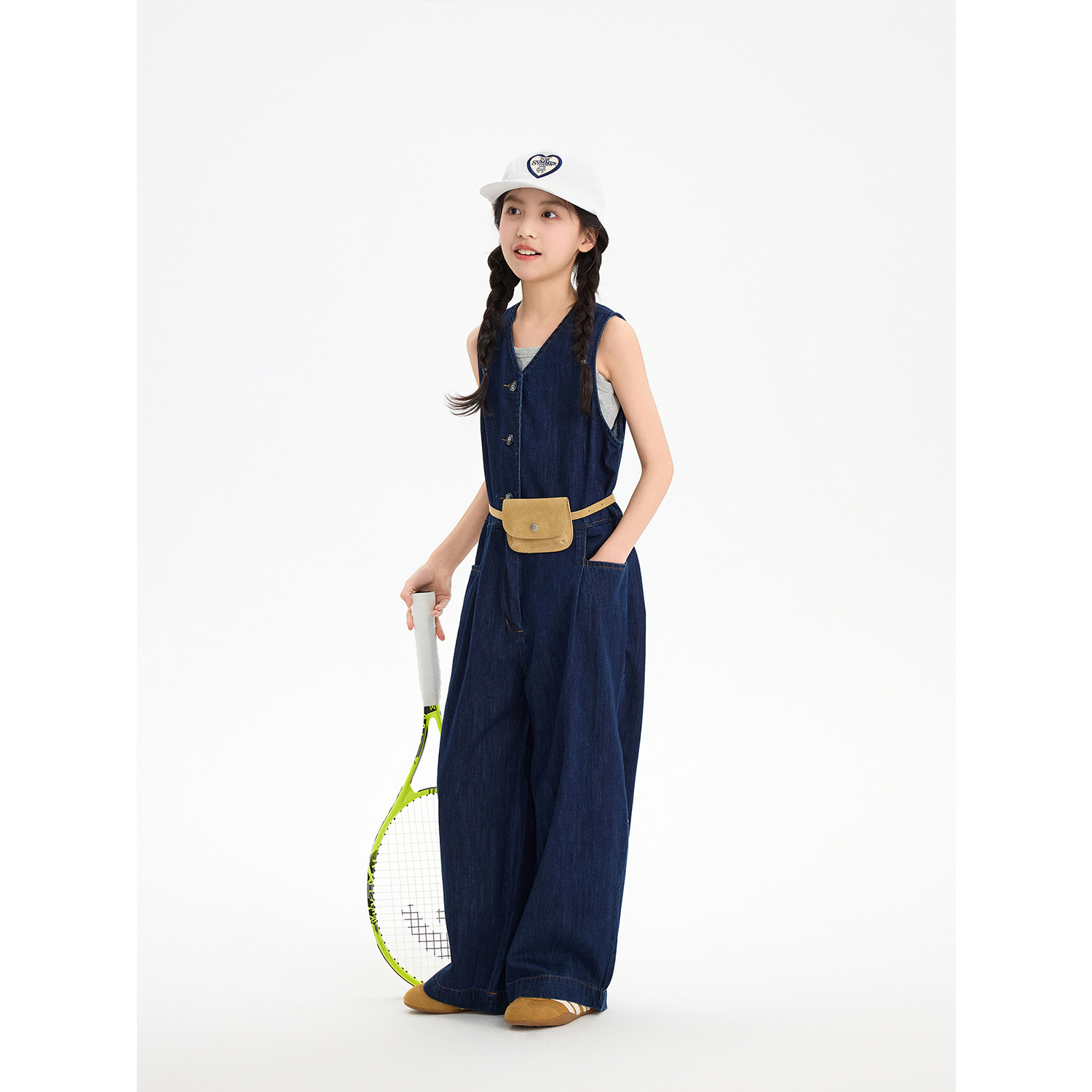 여자 데님 조끼 바지 봄 2025 어린이 느슨한 넓은 다리 바지 중형 및 큰 어린이 서양식 한국식 작업복
