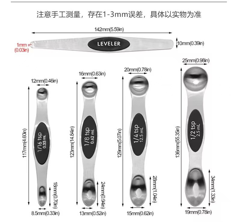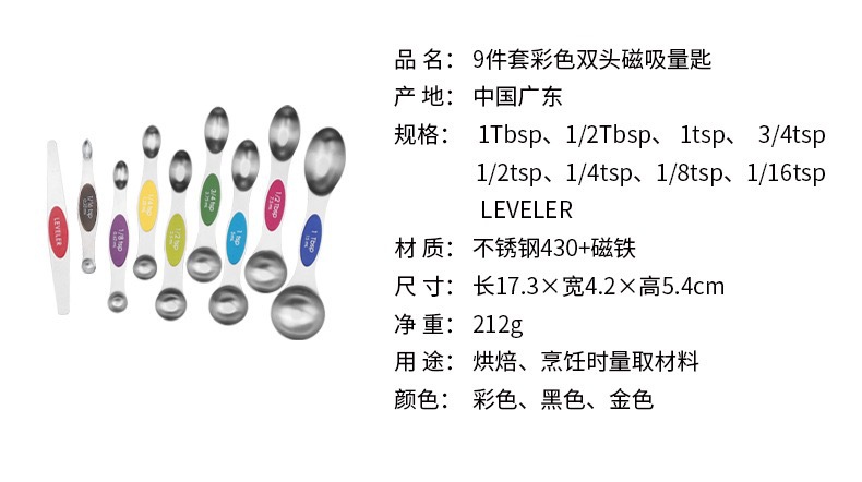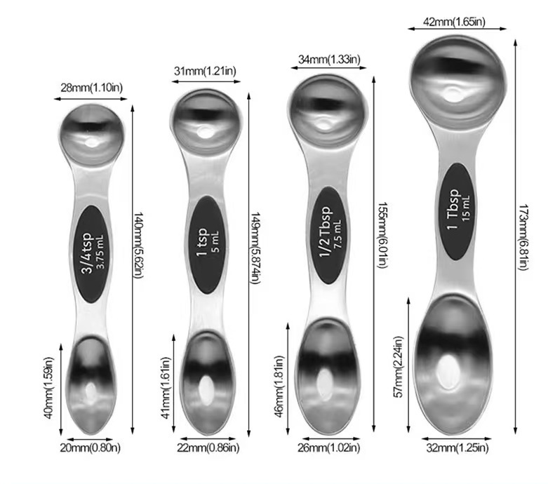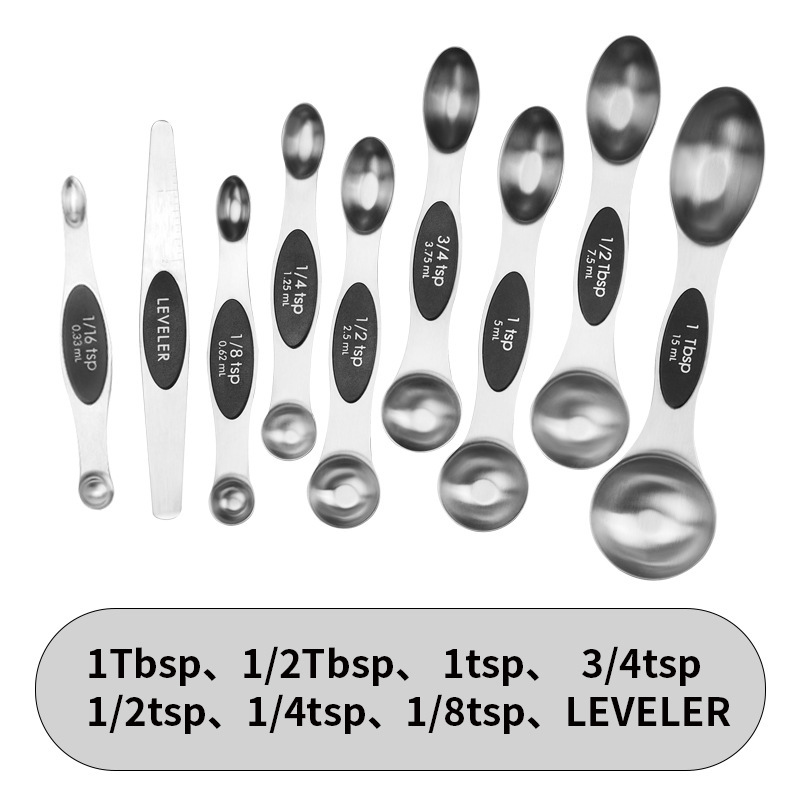 스테인리스 스틸 계량스푼 세트(그램 눈금 포함) 9종/8종, 자석 부착 베이킹 계량스푼