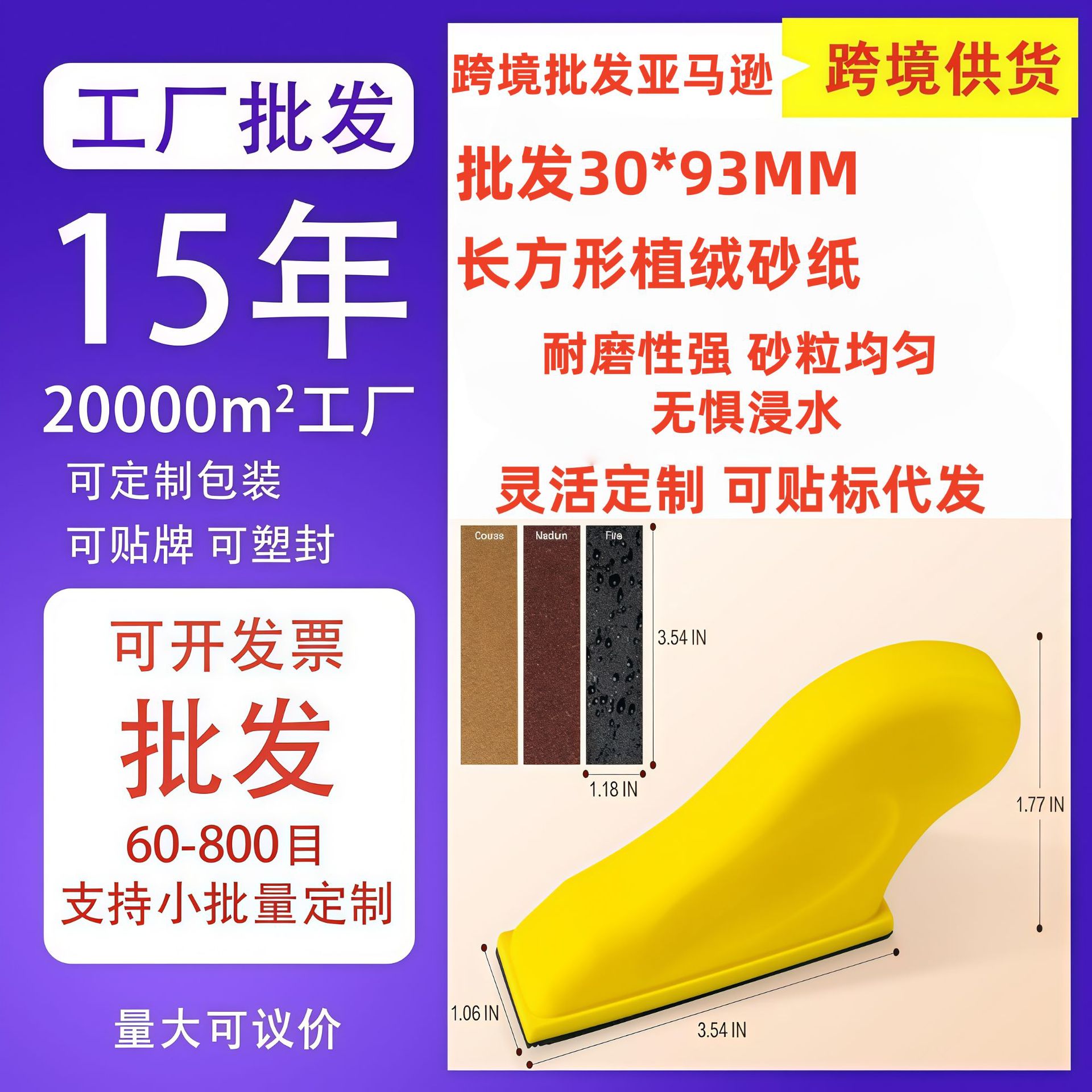 국경 간 도매용 벨크로 사포 30*93mm 벨크로 후면 부착 사각형 건식 연마 금속 연마 가구 광택 사각 사포