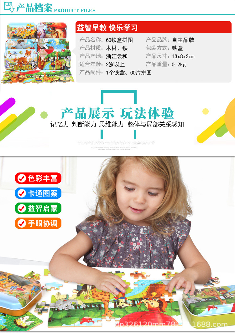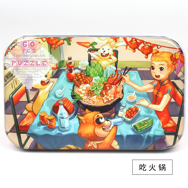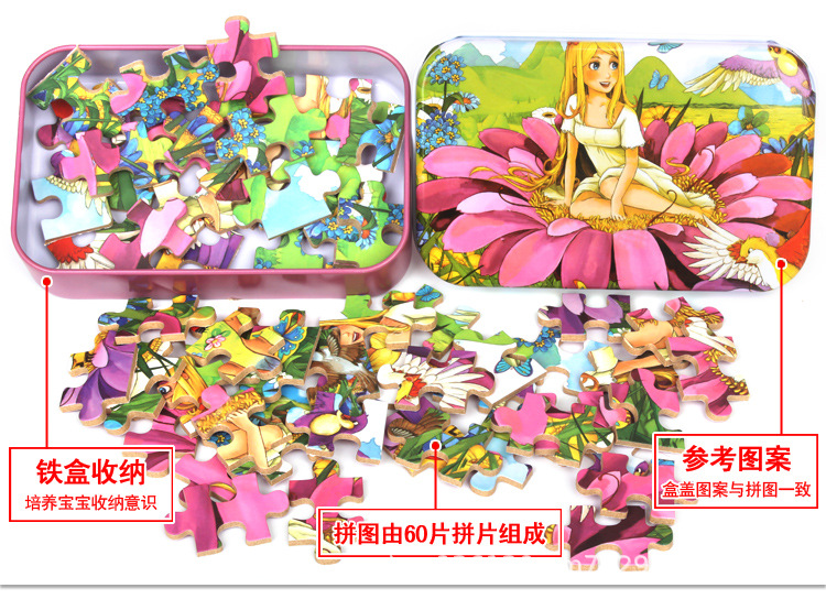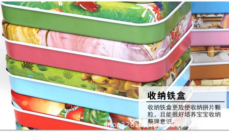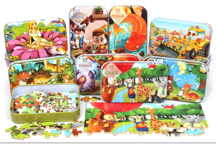 어린이 60 조각 철 상자 퍼즐 유치원 3-6 세 조기 교육 교육 동물 애니메이션 만화 나무 퍼즐 장난감 2스토어 가기