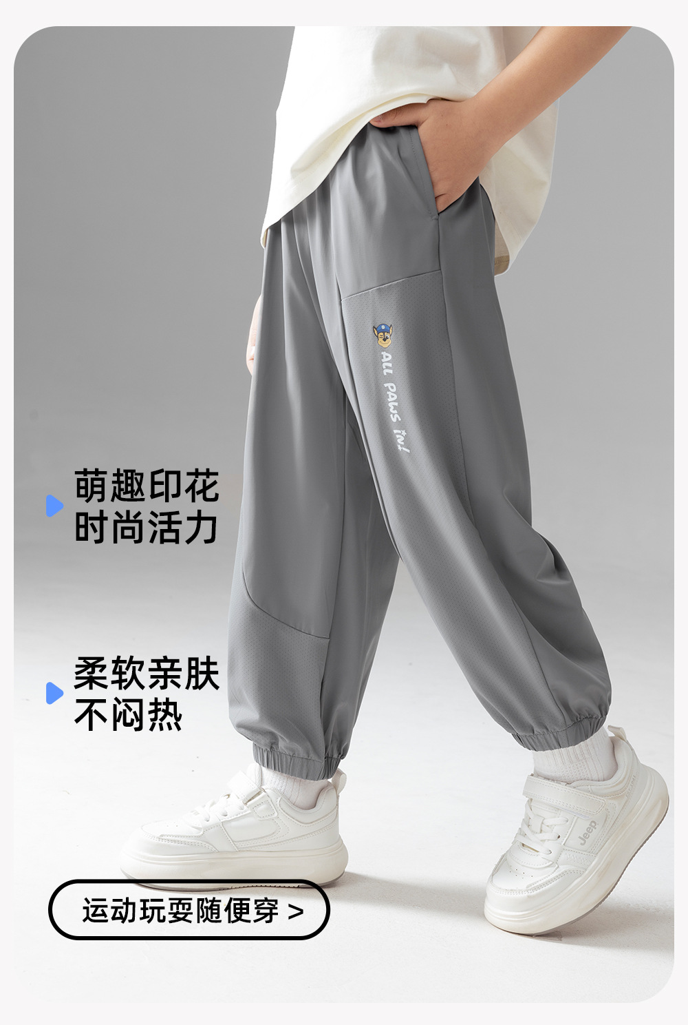 왕왕 팀 어린이 여름 바지 선크림 시원한 느낌 어린이 모기 바지 2025 새로운 여름 소년 캐주얼 바지스토어 가기