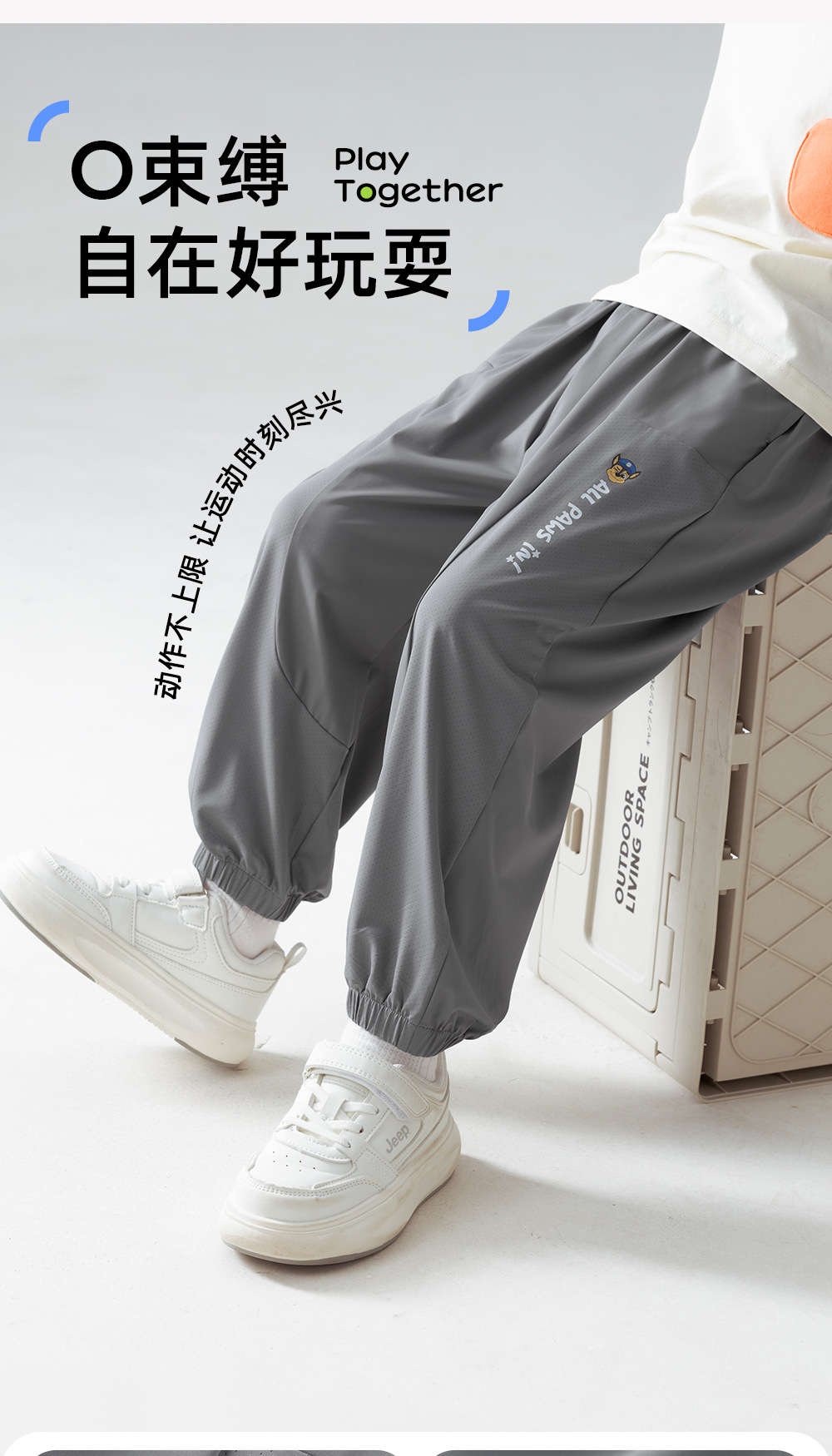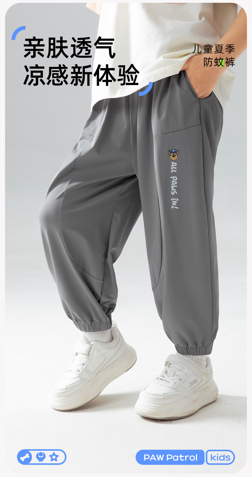 왕왕 팀 어린이 여름 바지 선크림 시원한 느낌 어린이 모기 바지 2025 새로운 여름 소년 캐주얼 바지