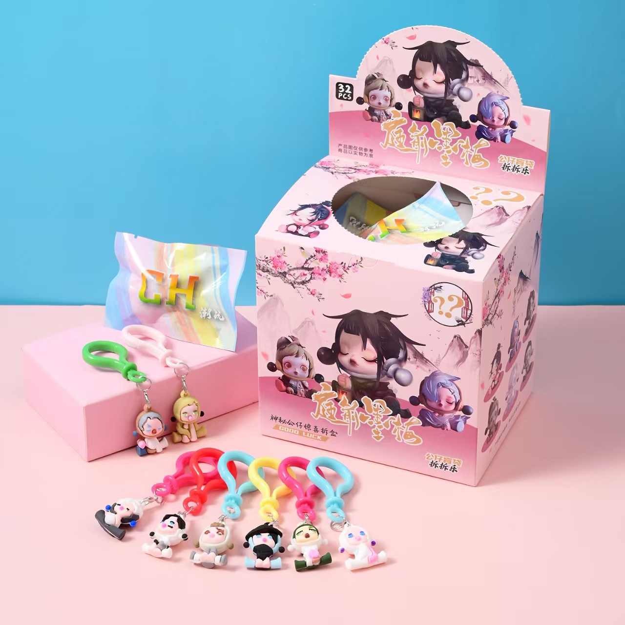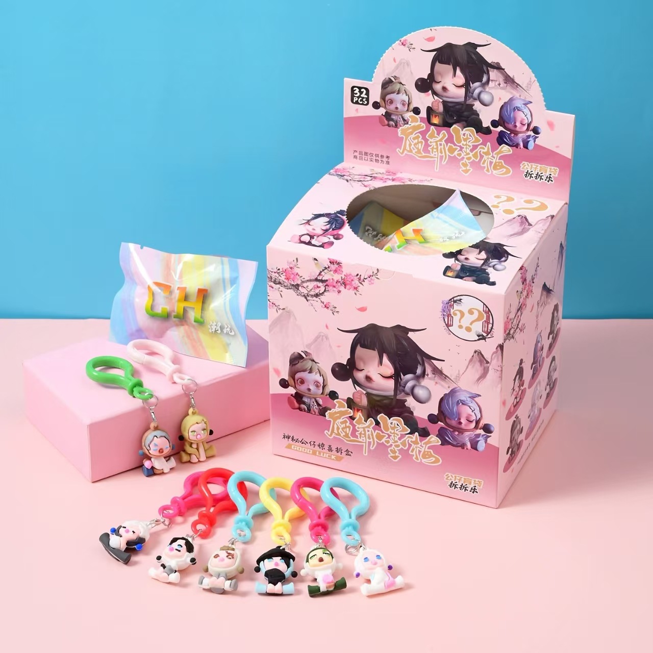 국경 간 산리오 블라인드 가방 철거 르 인형 펜던트 만화 키 체인 초등학교 어린이 장난감 학교 선물