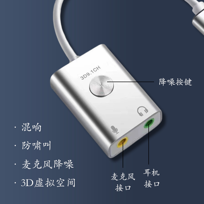 원 키 소음 감소 사운드 카드 3D 스테레오 라이브 사운드 카드 USB 듀얼 코어 스마트 오디오 음성 프로세서스토어 가기