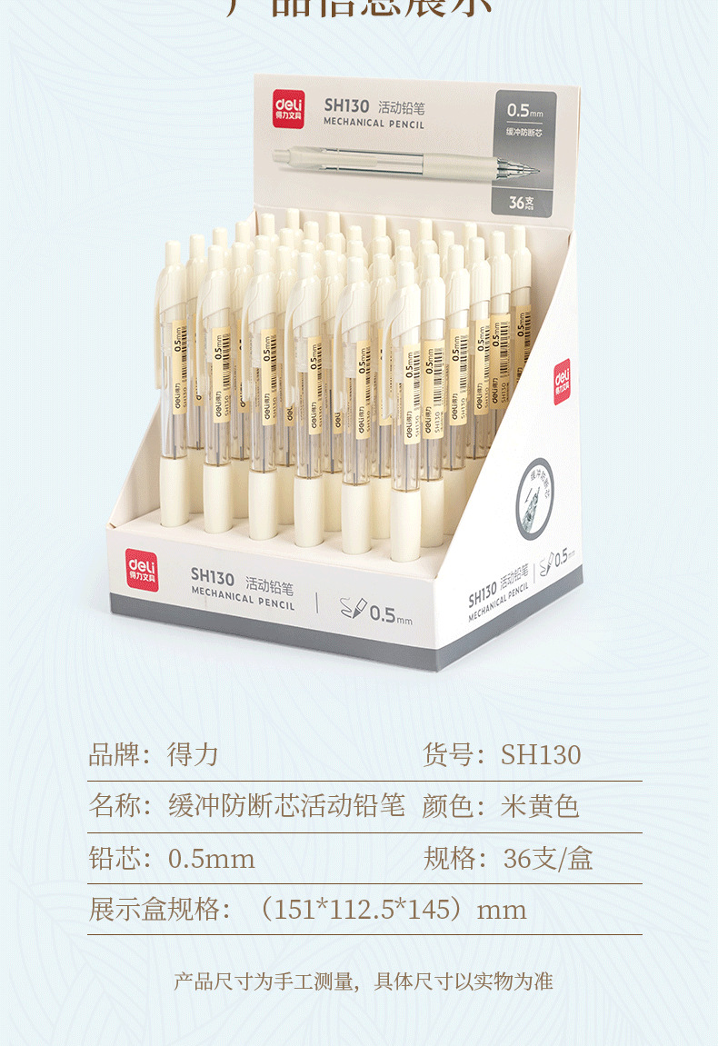 델리 SH130 높은 컬러 값 자동 연필 초등학교 학생들은 코어 자동 펜 0.5mm 리드 올바른 그립 자세로 계속스토어 가기