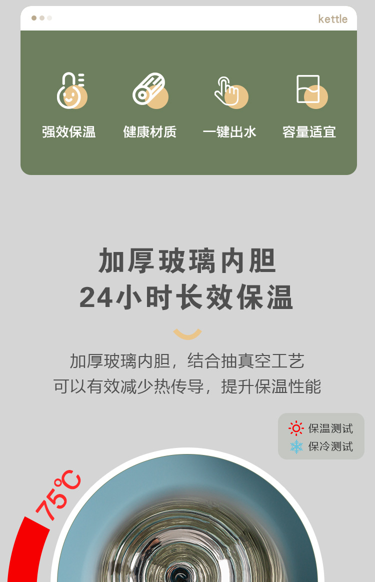 가정용 보온병 프레스 유형 유리 라이너 절연 온수병 학생 휴대용 대용량 온수병 도매스토어 가기
