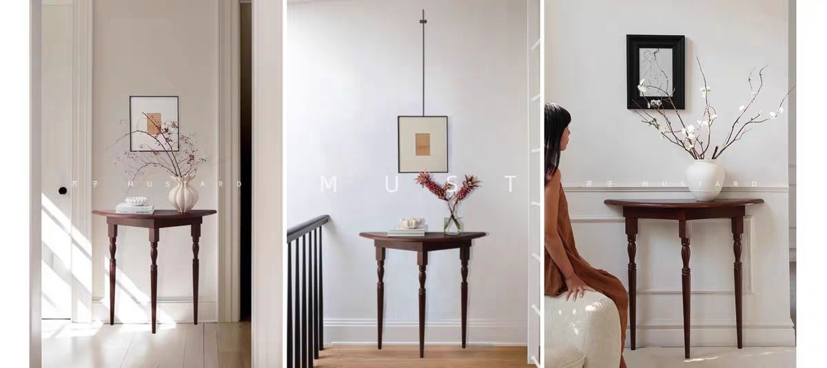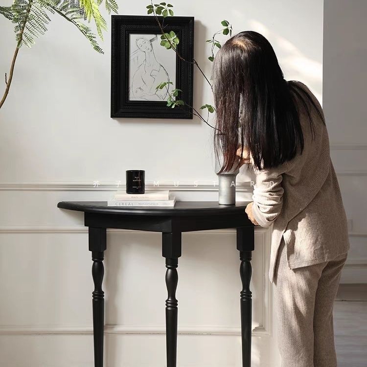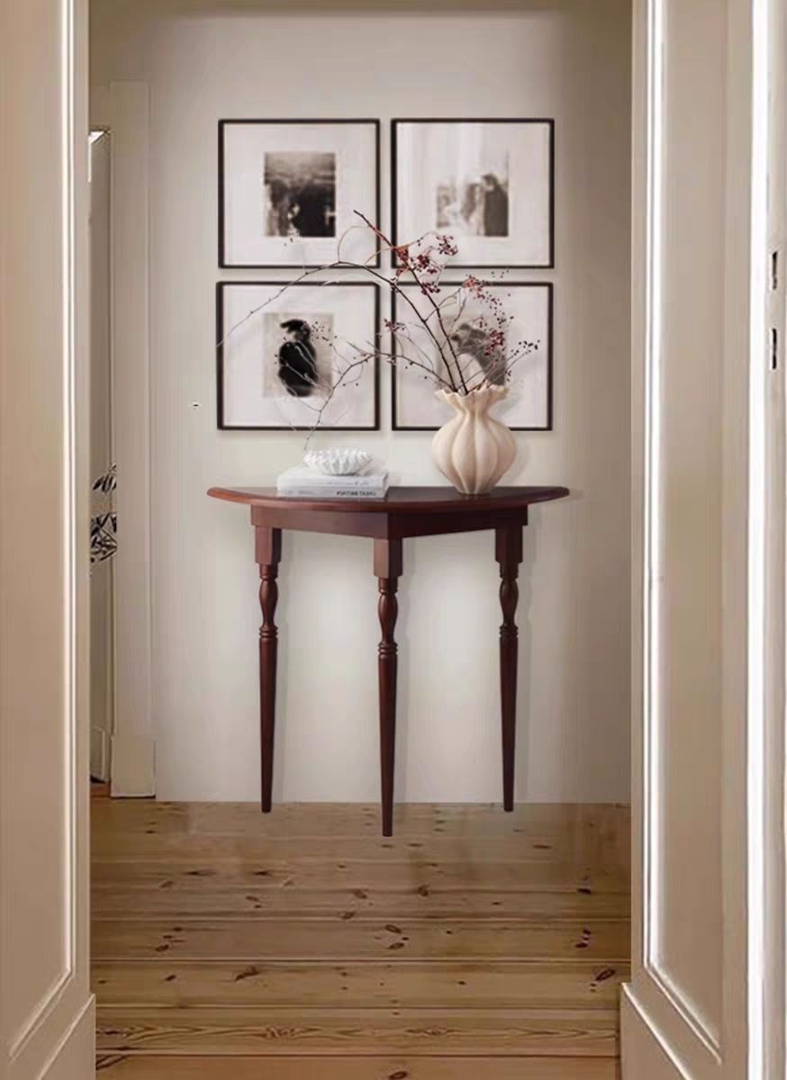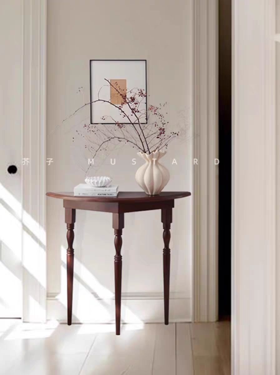 2025 새로운 도착 라이트 럭셔리 현대 솔리드 우드 입구 테이블 반원형 복도 디스플레이 테이블 벽면 좁은 장식 공급 테이블
