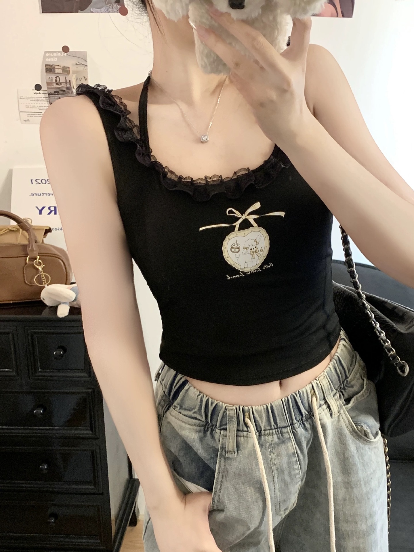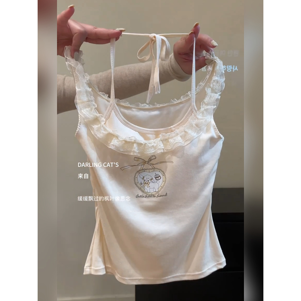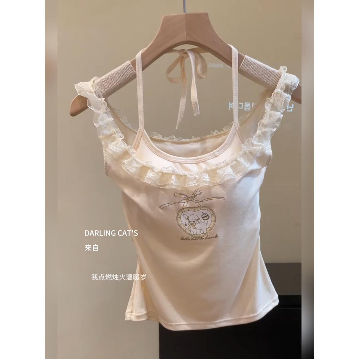 독특하고 아름다운 레이스 스트랩 교수형 목 벨트 가슴 패드 슬링 조끼 여성의 여름 외형 내복 아름다운 뒤 작은 탑