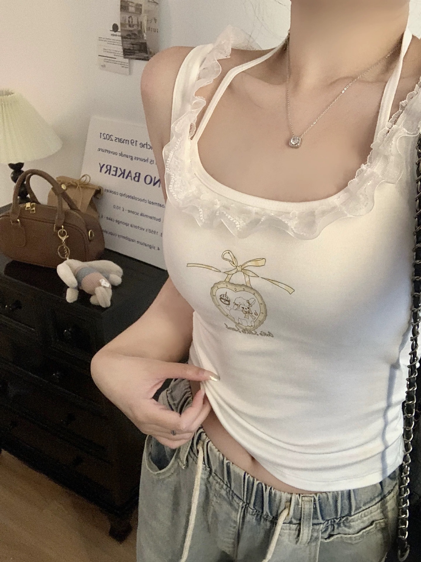 독특하고 아름다운 레이스 스트랩 교수형 목 벨트 가슴 패드 슬링 조끼 여성의 여름 외형 내복 아름다운 뒤 작은 탑스토어 가기