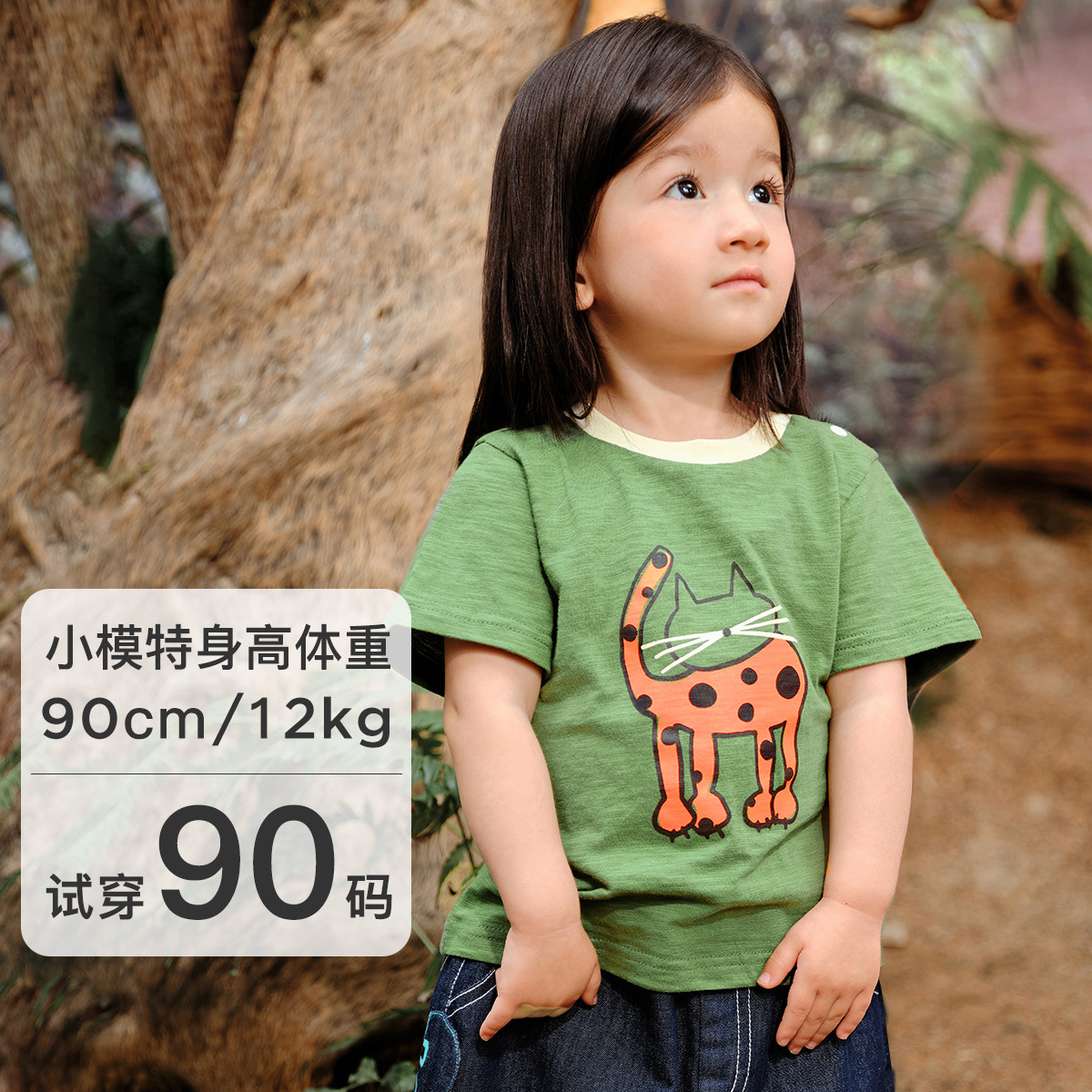 [맞춤형 가공] 아미라 아동복 25 여름 새로운 어린이 만화 인쇄 대비 색상 둥근 목 반소매 티셔츠스토어 가기